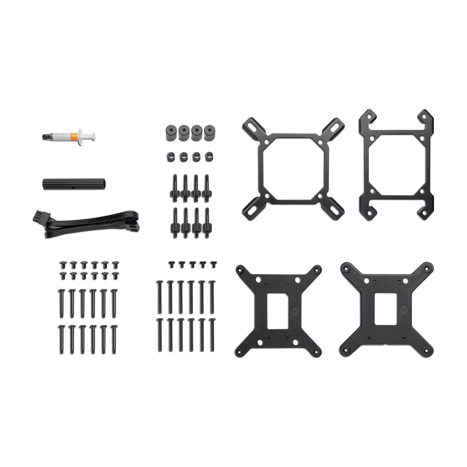 >Новое позиционирование вращающихся фитинговУлучшенное положение поворотных фитингов с другой стороны, которые теперь расположены рядом друг с другом, позволяет устанавливать EK-Nucleus AIO даже в самых тесных условиях.