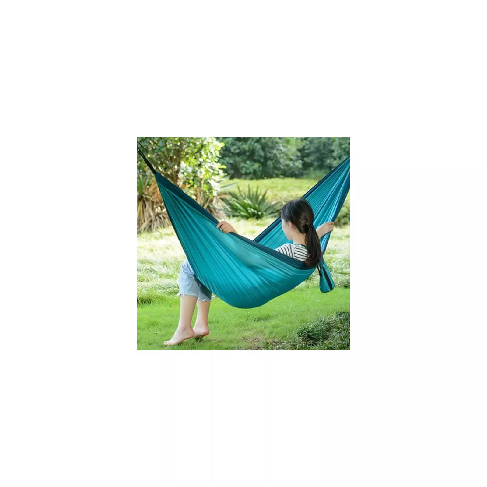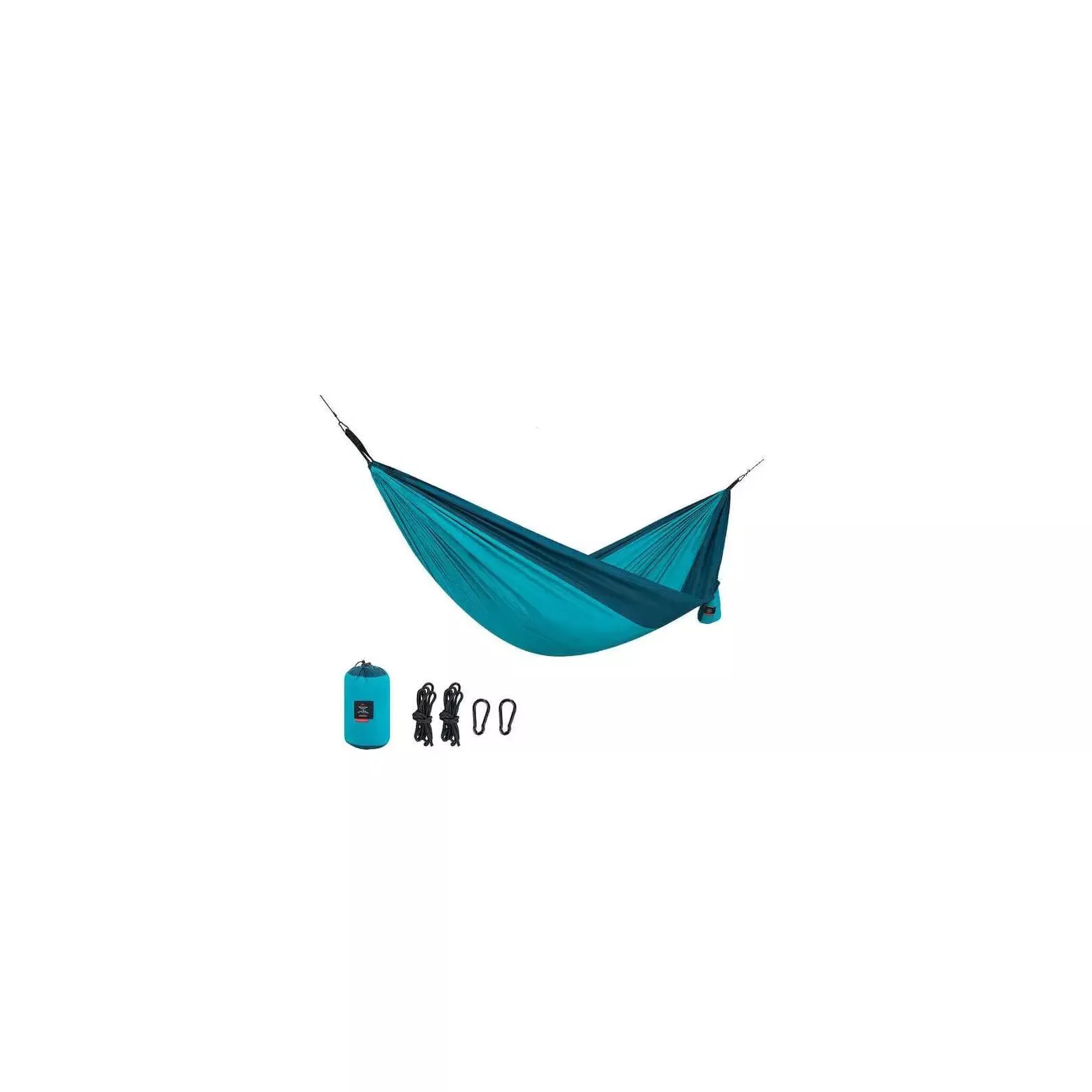 Гамак следует подвешивать на пролете около 3 м. Достаточно двух деревьев или других прочных точек крепления. Закрепить на них гамак можно с помощью имеющихся в комплекте веревок и карабинов. Расстояние над грунтом составляет 50 см. Такой гамак можно брать в поход, идеально подойдет для туризма, кемпинга, велотуризма. Особенности: