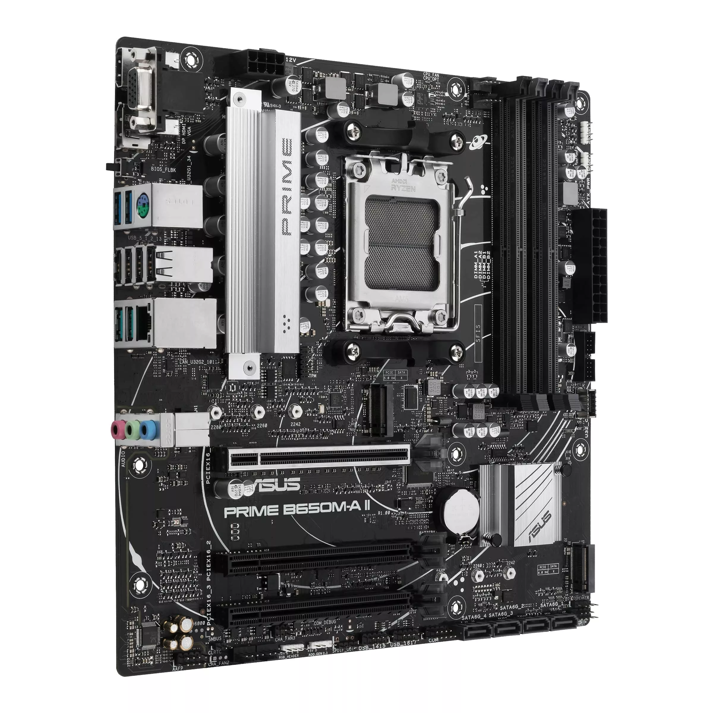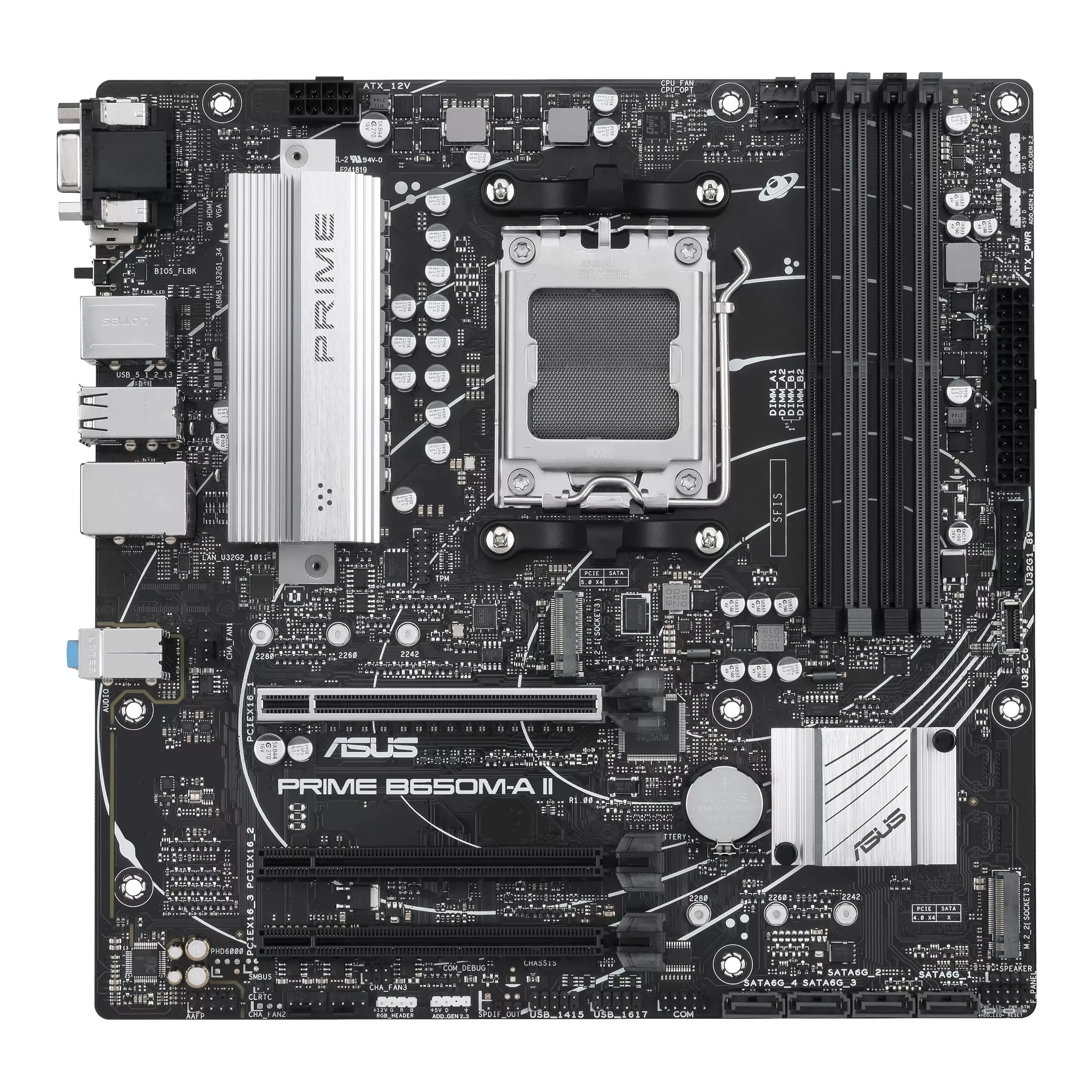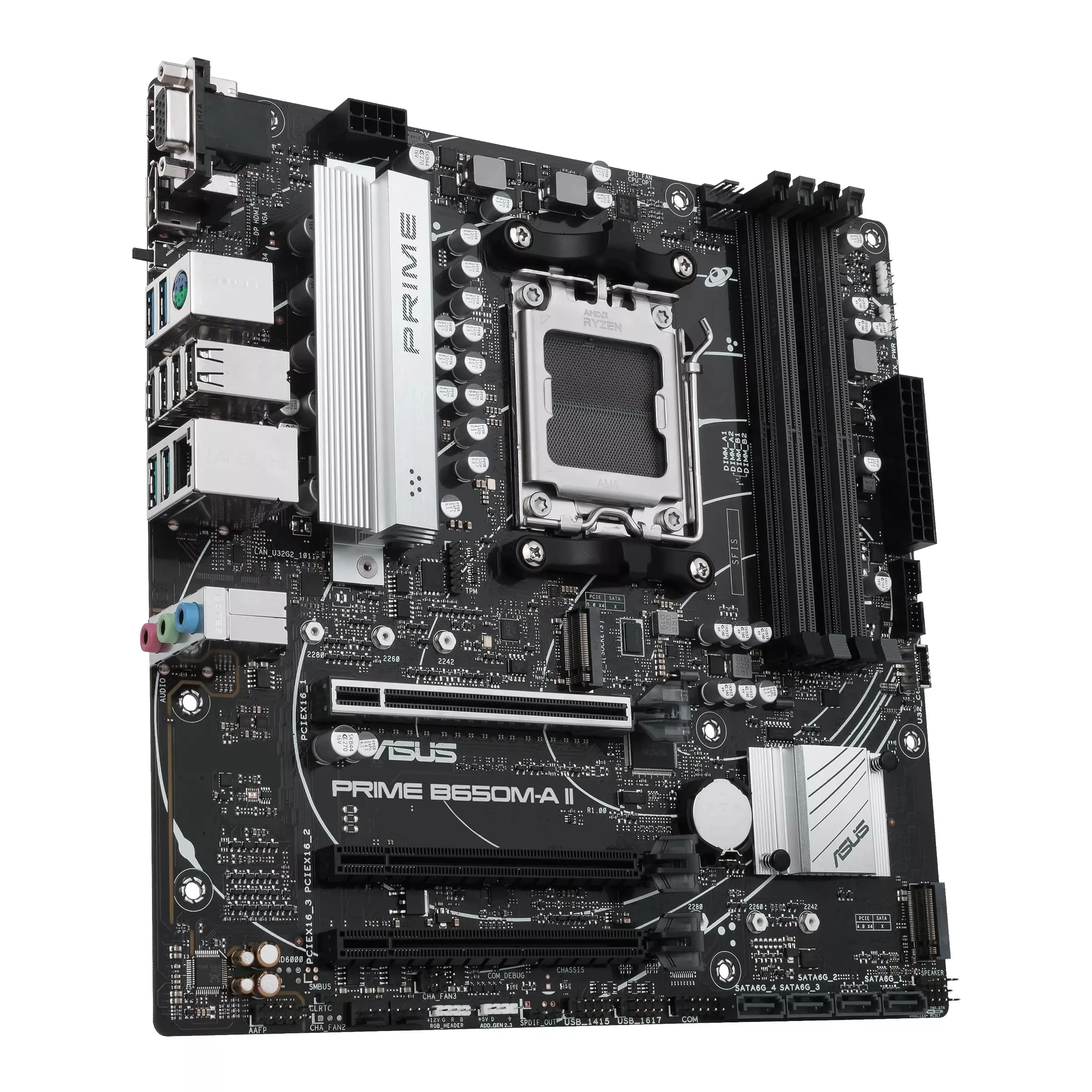 PRIME B650M-A II оснащена сразу двумя раз'емами M.2, один из которых имеет интерфейс PCIe 5.0, обеспечивающий скорость передачи данных до 128 Гбит/с. Он идеально подходит для подключения высокоскоростного твердотельного накопителя, который позволяет значительно ускорить стартовую загрузку операционной системы и запуск программ.