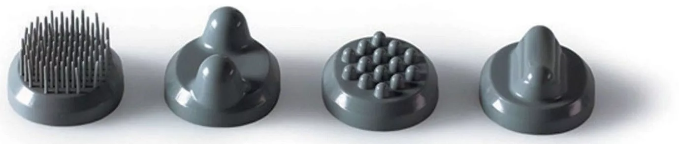 Для более интенсивного массажа и адаптации массажа к вашим потребностям вы можете использовать одну из четырех различных массажных насадок – насадку-щетку, 2 насадки-пузырьки и насадку-конус. Для этого выберите массажную насадку по своему вкусу.