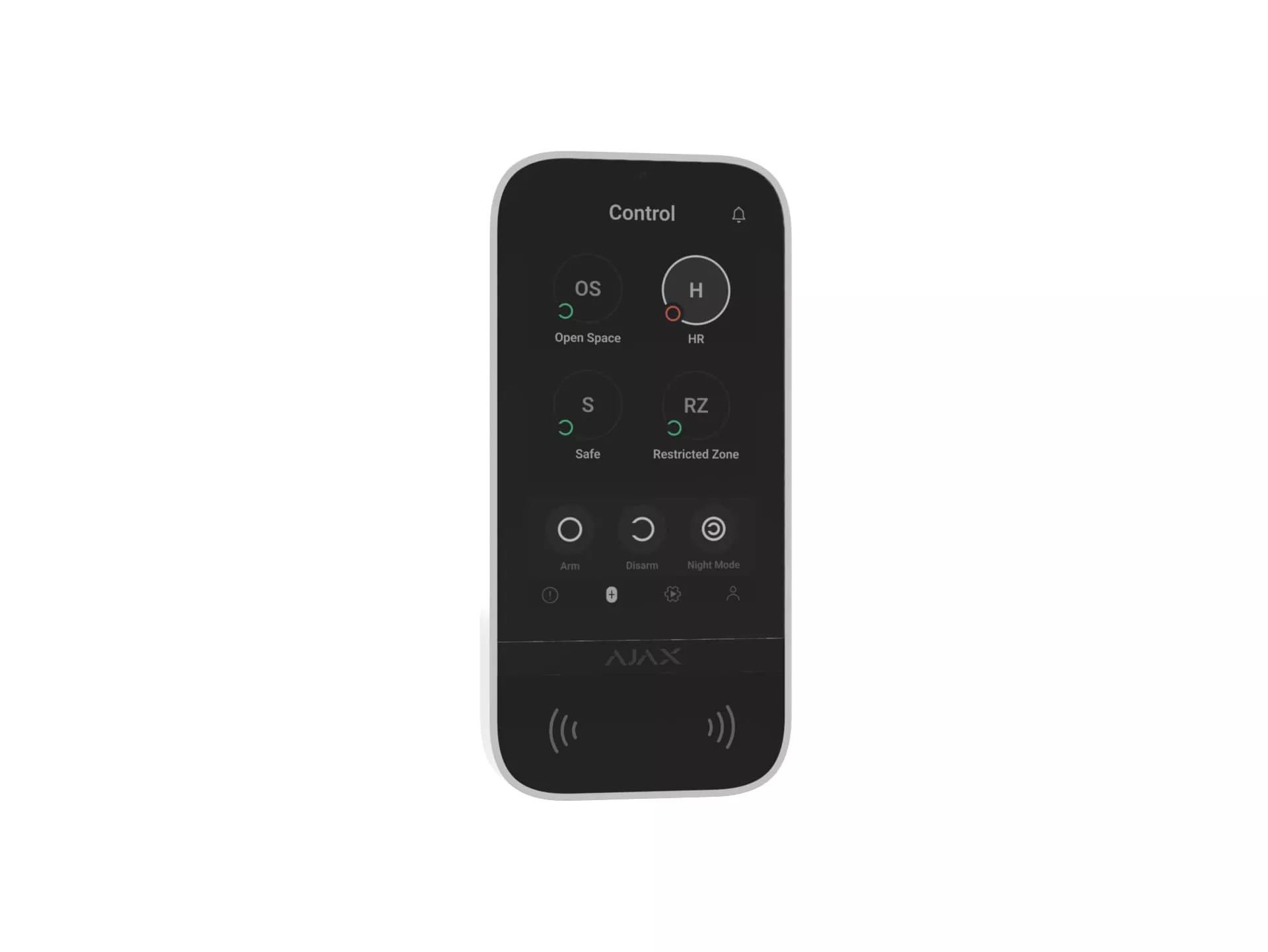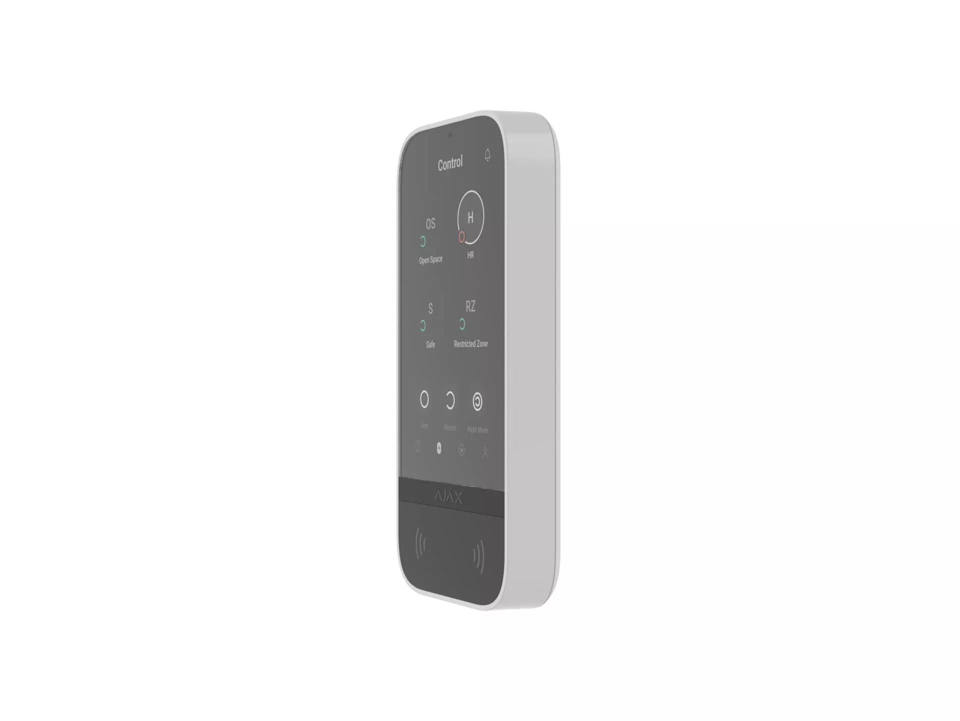Узнайте все тревоги, открывание дверей и задержки на вход/выход благодаря встроенному зуммеру. Громкость легко регулируется PRO— со смартфоном или ПК. Уведомления о неисправностях отображаются при установке под охрану. li> Пользователь сам выбирает удобный для себя способ управления клавиатурой. В ленте отображаются все события, включая действия пользователя и подробности аутентификации. Управлять клавиатурой можно через смартфон с приложением Ajax. Права доступа имеют только пользователи, одобренные администратором системы. Использование Pass и Tag фиксируется в ленте событий приложений Ajax. Администратор системы может в любой момент отменить или ограничить доступ устройства бесконтактной авторизации. KeyPad TouchScreen поддерживает три типа кодов: Карта Pass и брелок Tag оснащены оригинальными чипами DESFire, имеют одинаковые функции, но разный корпус— выбирайте удобную для вас форму. Один Tag или Pass может управлять 13 системами безопасности. Устройства доступа продаются отдельно партиями по 3, 10 или 100 штук. Назначить персональный код доступа в настройках хаба просто— сотрудники офиса, представители клининговой компании или другие лица без проблем попадут на территорию. KeyPad TouchScreen содержит вкладку с тревожными кнопками, которые можно настроить для уведомления о трех типах событий. Если пользователя заставляют отключить режим охраны, он может использовать код принуждения. Код принуждения имитирует снятие с охраны, тем временем посылая сигнал тревоги охранной компании. Большая сенсорная панель для легкого управления системой. Стекло клавиатуры устойчиво к царапинам— клавиатура сохраняет безупречный вид. Световой сенсор для автоматической регулировки подсветки— яркое днем и не ослепительное ночью. Сенсор приближения для автоматической активации клавиатуры, когда подносишь к ней руку. Звуковый сигнал с разными паттернами— ни одного шанса проигнорировать тревогу, задержку или другое событие. Считыватель карт и брелок для аутентификации с помощью Tag или Pass. Считыватель BLE для аутентификации со смартфона. Крепежная панель SmartBracket— Для установки устройства не нужно разбирать корпус. Кабель-канал для надежной фиксации 12 В?. Тампер— сообщает о попытке оторвать клавиатуру от поверхности или снять ее с крепежной панели. Отверстие для надежной фиксации клавиатуры комплектным винтом. Четкое и качественное изображение: на экране с высоким разрешением разместились все необходимые элементы управления. Яркость подсветки регулируется автоматически, гладкая поверхность выглядит стильно. все ради эстетики и комфорта. Батареи Монтаж без проводов обеспечивает быстрый процесс настройки для бесперебойной работы. В приложение приходит уведомление о низком заряде батарей. Обеспечьте бесперебойную работу устройства, во?соединив его к источнику питания 12 В?для большей автономности. Предустановленные батареи будут работать как надежный резервный источник питания. KeyPad TouchScreen использует собственные защищенные радиопротоколы Jeweller и Wings. Изменяйте права доступа и коды в режиме реального времени в приложениях Ajax. Скомпрометированный код меняется дистанционно за считанные минуты, поэтому нет необходимости вызвать инженера монтажа на об?ект. KeyPad TouchScreen легко добавить на хаб: достаточно только отсканировать QR-код. Не следует разбирать корпус или