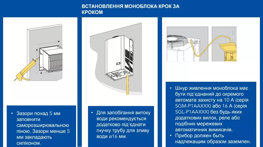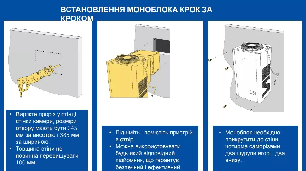 SNAIGE специализируется на производстве коммерческих моноблоков. Они предназначены для малых и средних холодильных и морозильных камер/комнат и могут быть установлены на стене помещения.