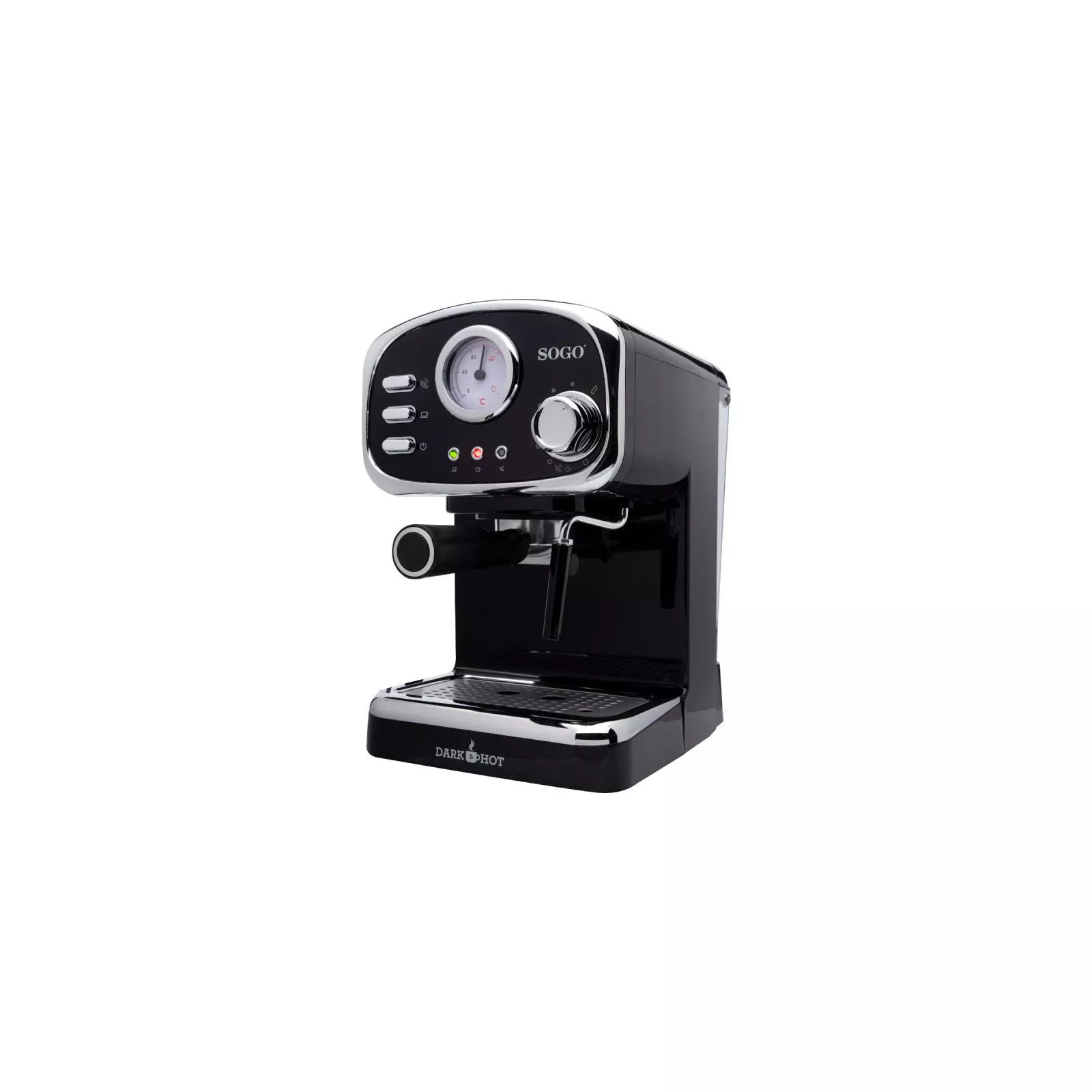 SOGO CAF-SS-5680<-полуавтоматическая кофеварка для эспрессо с паровой струей и насосом под давлением 15 бар, цвет черный. 2 профессиональных фильтра диаметром 53 мм и держатель фильтра для приготовления одной или двух чашек кофе одновременно.