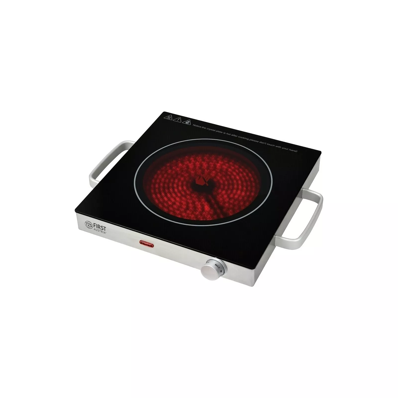 Нагрев инфракрасной электроплиты First FA-5097 происходит благодаря трубчатым электронагревателям (ТЭН-ам). Они генерируют инфракрасное излучение, которое проходит через стеклокерамическую поверхность и поглощается содержащейся в продуктах водой. Как результат – выделение большого количества теплоты. Корпус инфракрасной электроплиты First FA-5097 изготовлен из нержавеющей стали. В общем модель выглядит более современно, чем у дисковых электроплит. Из нижней части корпуса инфракрасной электроплиты First FA-5097 расположены прорезиненные ножки, которые придают плите устойчивое положение во время работы. На передней части корпуса размещены световой индикатор питания и механический, поворотный регулятор термостата.