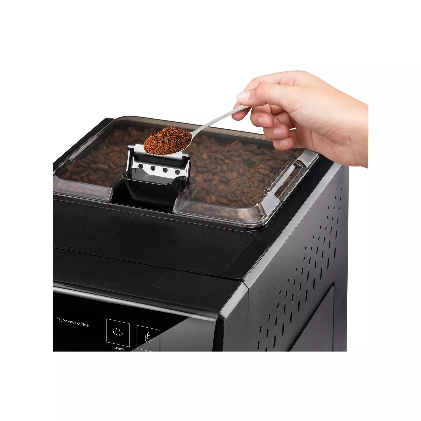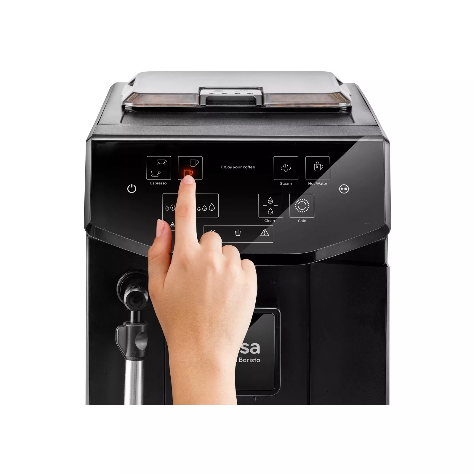 Новая суперавтоматическая кофеварка Supreme Barista позволяет наслаждаться лучшим кофе из свежесмолотых зерен. Его давление в 20 бар производит непревзойденное пенистое молоко. Ее уникальная технология Safe and Grind позволяет безопасно изменять крупность молотого помола, регулируя кофемолку, а также интенсивность аромата, количество воды в каждом кофе, температуру и жесткость воды для повышения вкуса.. Однако его также можно использовать непосредственно с молотыми зернами, и он имеет бункер, который вмещает нужное количество для идеального кофе. Его двухлитровый резервуар для воды легко наполнять и оснащен и укомплектован технологией Friendly Clean Care, уникальной системой, позволяющей легко извлечь всю заварную группу, тщательно очистить ее и таким образом продлить средний срок службы.