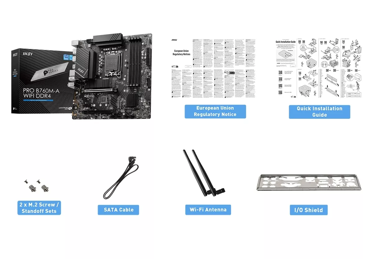 | Комплектация | SATA Cable; I/O Shield; Quick guide; M.2 Screw Package; User Manual; Wi-Fi Antenna; Standoff for M.2 Socket |