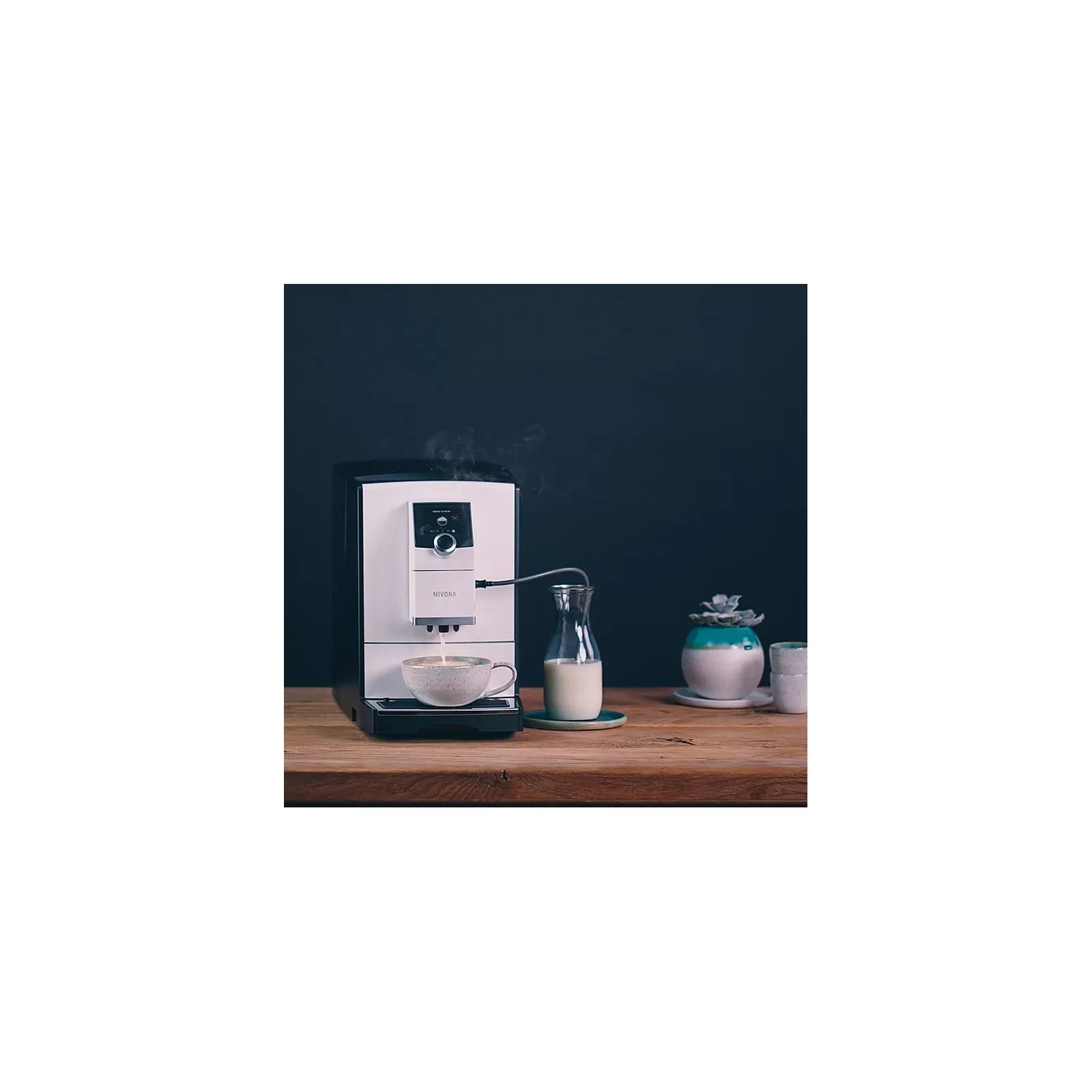Автоматическая кофемашина Nivona CafeRomatica 796 (NICR 796) производится в современном дизайне в корпусе из металла и ABS пластика в белом и черном цветах. Мощность составляет 1455 Вт, а создаваемое давление – 15 бар. Настольный компактный аппарат готовит напитки из зернового и молотого кофе, используя воду, залитую в резервуар объемом 2,2 литра. Для зерен кофе предусмотрен герметичный контейнер вместимостью 250 грамм, откуда они подаются на встроенную мельницу со стальными жерновами. Пользователь может выбрать пять степеней крепости напитка, три уровня температуры, а также объем порции от 20 до 240 мл. Кроме того, есть возможность одновременного приготовления двух чашек кофе и регулировка дозатора под высоту посуды до 14 см. Не забыли и о любителях капучино – напиток готовится в автоматическом режиме. Автоматическая кофемашина Nivona CafeRomatica 796 (NICR 796) управляется сенсорными кнопками с цветным дисплеем TFT и удаленно со смартфона через Bluetooth.