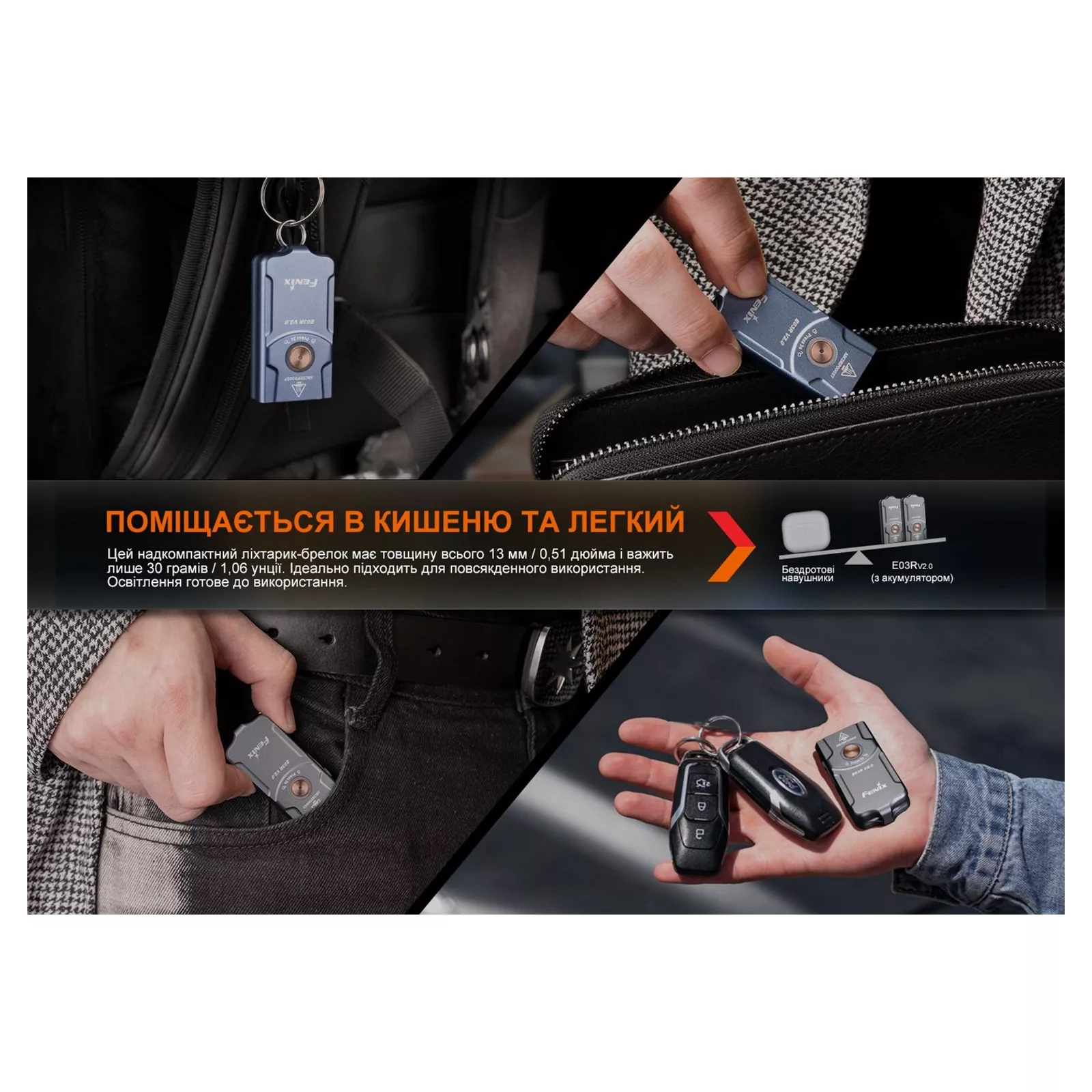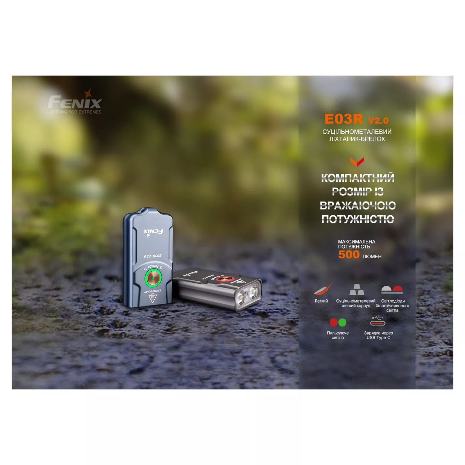 Фонарь Fenix E03R V2.0 предназначен для повседневной носки и позволяет осветить дистанцию вплоть до 90 метров на самом мощном режиме. Модель представляет собой обновление популярного фонаря-брелока E03R, которое производитель оснастил более емким аккумулятором. Это решение позволило продлить максимальное время работы фонаря до 30 часов. Кроме того, на 92% увеличилась его мощность, которая теперь составляет 500 люменов.