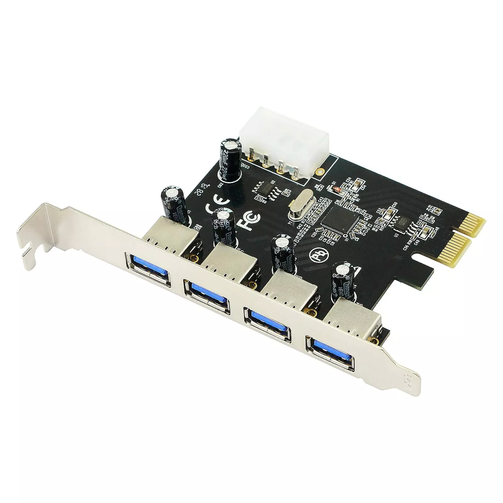 Плата расширения Dynamode USB3.0-4-PCIE — это специальный контроллер PCI-E USB 3.0 на 4 порта, устанавливаемый в слот расширения материнской платы и который поможет подключить к вашему персональному компьютеру устройства с интерфейсом USB от версии USB 3.2 (=3.0) до версии 1.1. Такими устройствами могут быть внешние жесткие диски, SSD-накопители, флэш-карты (флешки), клавиатуры, мониторы, телефоны, джойстики, камеры и другие устройства. Плата расширения Dynamode USB3.0-4-PCIE имеет уникальный набор микросхем Renesas NEC/uPD720201, он лучше и дороже чипсета VIA VL805, который часто используется в подобных контроллерах.