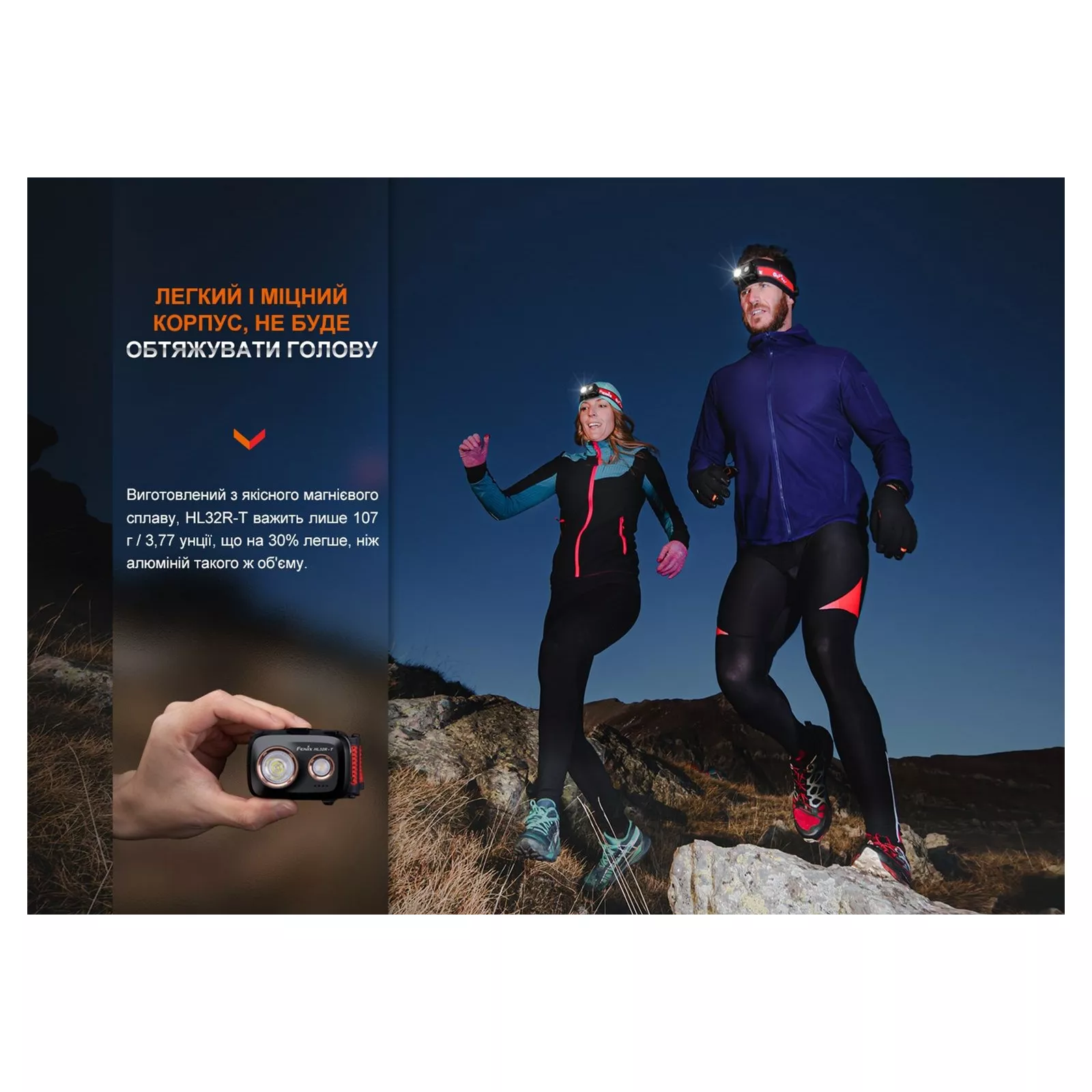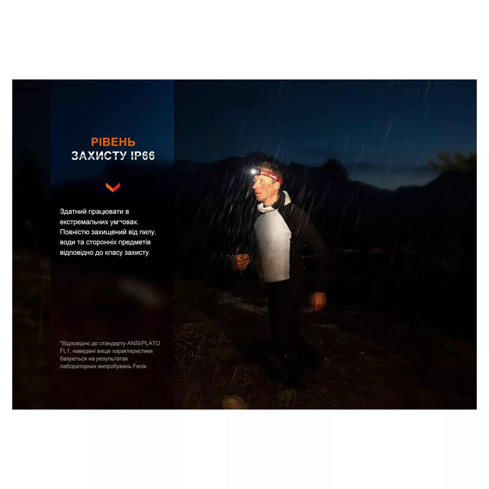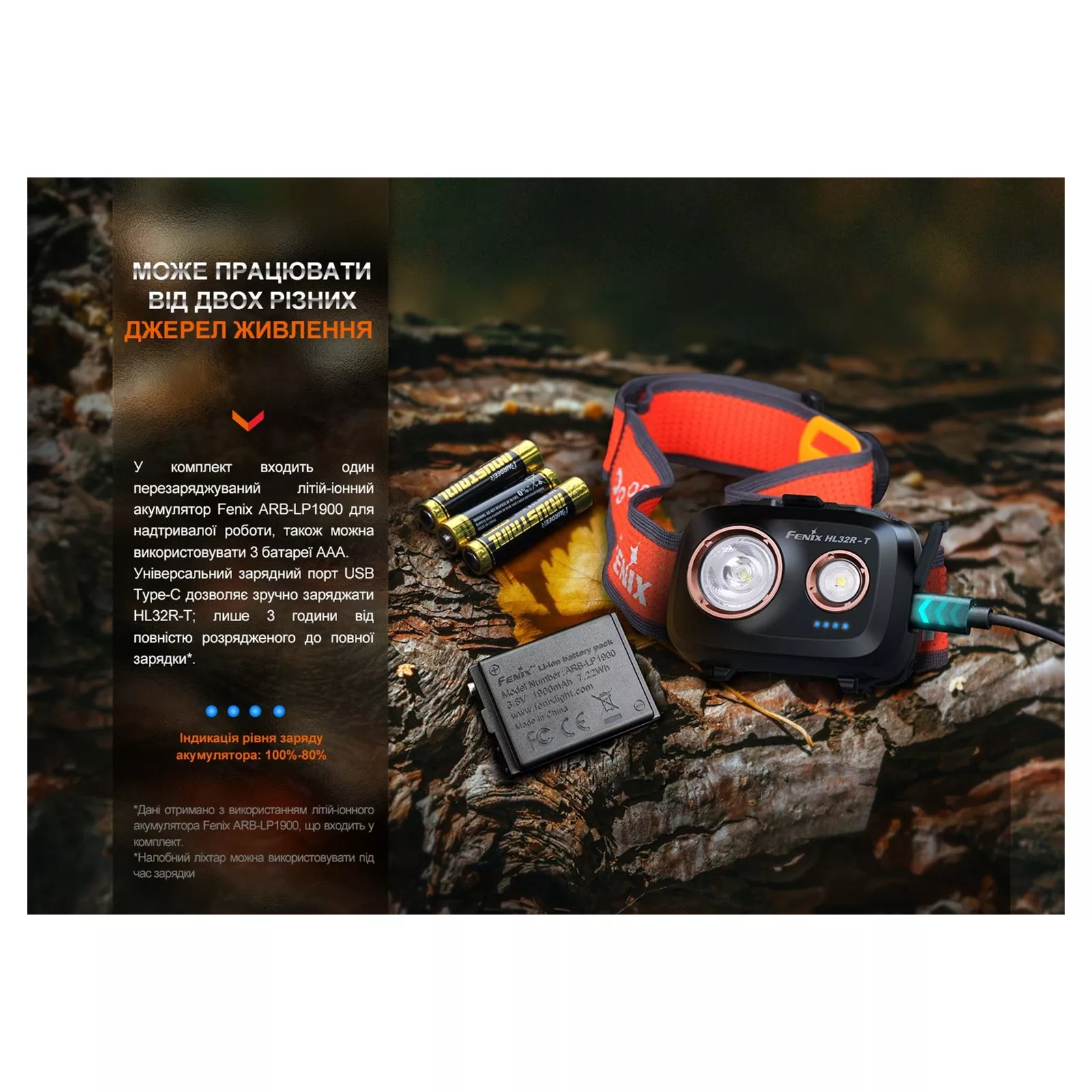 Источник питания: Fenix HL32R-T заточен под работу на аккумуляторном Li-ion блоке ARB-LP1900 фирменного производства. Этот аксессуар находится в комплекте с фонарем и обеспечивает модели поразительную автономность до 12.5 дней. Блок заряжается в течение трех часов через стандартный порт Type-C. Необходимый для этого кабель USB также имеется в наборе. В передней части конструкции находятся четыре небольших индикатора, отображающих текущий уровень заряда аккумуляторного блока. Его можно вычислить на основе количества горящих индикаторов: 1 индикатор – 20%-0%; 2 индикатора – 50%-20%; 3 индикатора – 80%-50%; 4 индикатора – 100%-80%. Аккумулятор можно заменить тремя батарейками форм-фактора ААА, но в таком случае функция цветовой индикации заряда станет недоступной. , поэтому, кроме функциональности, упор также был сделан на лёгкость конструкции размером 66 х 45 х 30 мм. Для этого в качестве материала корпуса был выбран магниевый сплав, характеризующийся легкостью. Это решение позволило снизить общий вес фонаря до 107 г, что на 30% меньше по сравнению с аналогичными осветительными устройствами с алюминиевой оболочкой. При этом сплав надежно защищает электронику от повреждений при механическом воздействии. Это демонстрируют многочисленные тестирования модели, доказавшие, что корпус без проблем выдерживает падение с двухметровой высоты. Фонарь может работать в различных погодных условиях: в зимние морозы при температуре воздуха вплоть до-35°C и в летнюю жару, когда столбик термометра поднимается до отметки 45°C. Класс герметичности оболочки IP66 допускает эксплуатацию модели во влажной среде и предотвращает попадание внутрь пыли, песчинок и других засоров из-за стыков корпуса. Конструкция HL32R-T укомплектована эластичным налобным креплением с запатентованным механизмом регулировки длины. Это можно сделать одной рукой: оттянуть круглый регулятор в боковой части крепежа, растянуть/затянуть резинку поворотом регулятора и нажать его, поместив в исходное положение. Ширина резинки составляет 36 мм. Это можно сделать одной рукой: оттянуть круглый регулятор в боковой части крепежа, растянуть/затянуть резинку поворотом регулятора и нажать его, поместив в исходное положение. Ширина резинки составляет 36 мм. Это можно сделать одной рукой: оттянуть круглый регулятор в боковой части крепежа, растянуть/затянуть резинку поворотом регулятора и нажать его, поместив в исходное положение. Ширина резинки составляет 36 мм.