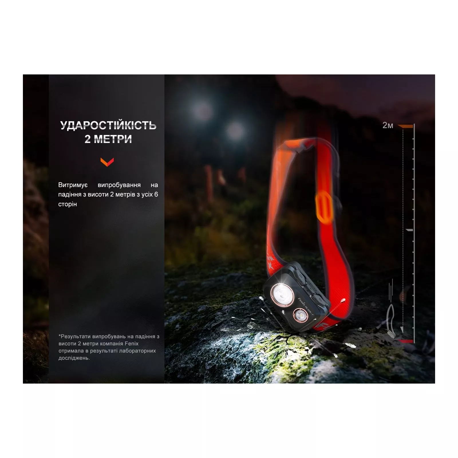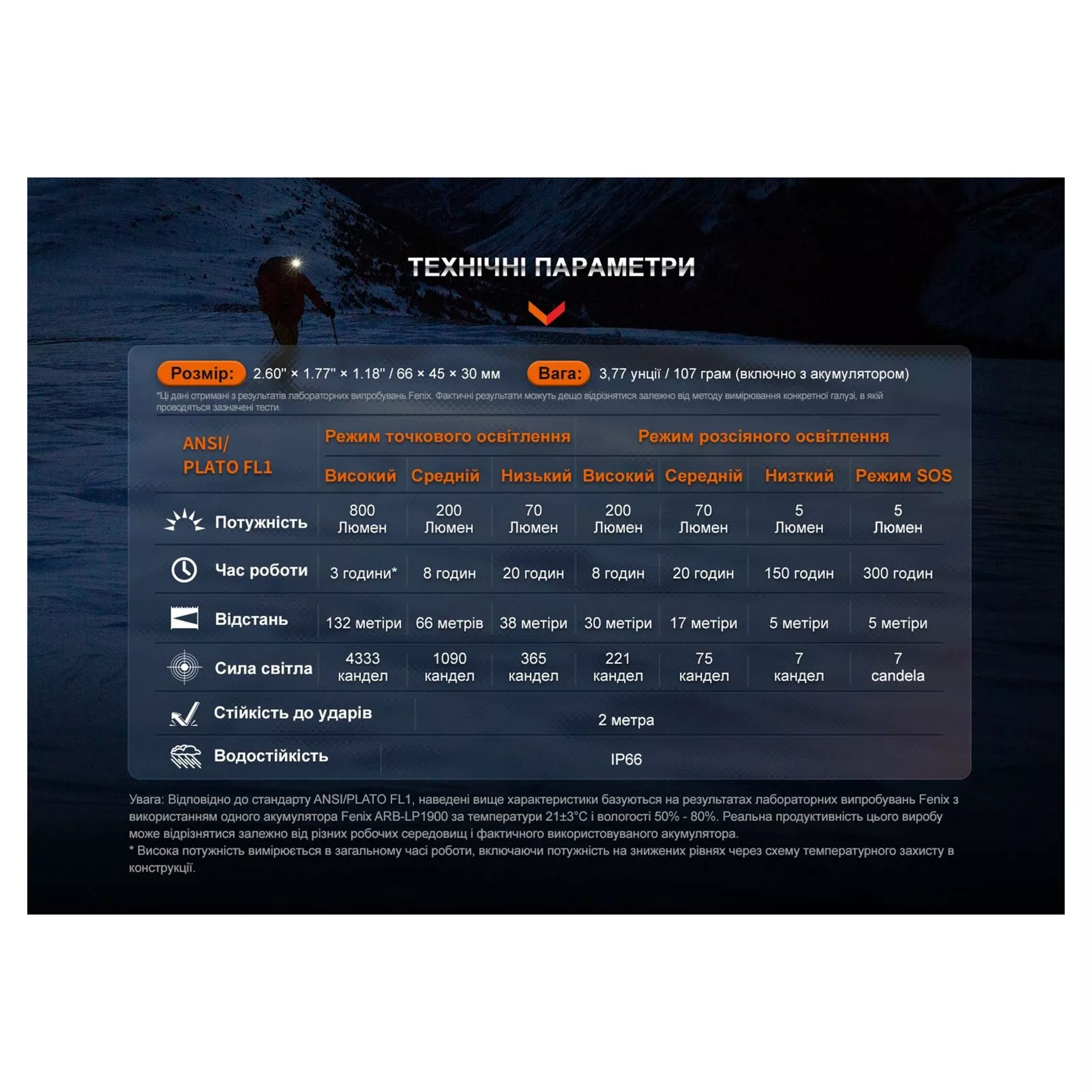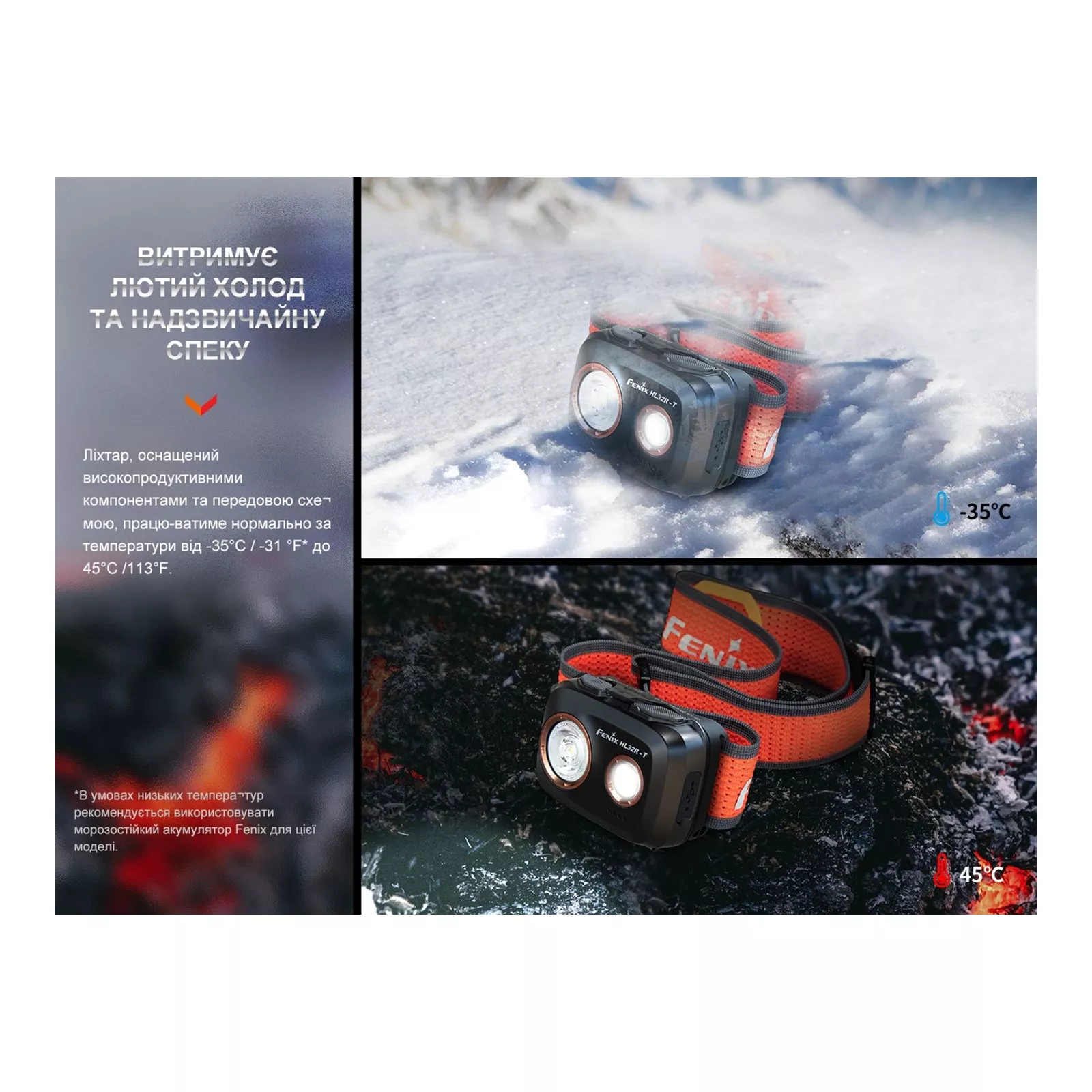 Источник питания: Fenix HL32R-T заточен под работу на аккумуляторном Li-ion блоке ARB-LP1900 фирменного производства. Этот аксессуар находится в комплекте с фонарем и обеспечивает модели поразительную автономность до 12.5 дней. Блок заряжается в течение трех часов через стандартный порт Type-C. Необходимый для этого кабель USB также имеется в наборе. В передней части конструкции находятся четыре небольших индикатора, отображающих текущий уровень заряда аккумуляторного блока. Его можно вычислить на основе количества горящих индикаторов: 1 индикатор – 20%-0%; 2 индикатора – 50%-20%; 3 индикатора – 80%-50%; 4 индикатора – 100%-80%. Аккумулятор можно заменить тремя батарейками форм-фактора ААА, но в таком случае функция цветовой индикации заряда станет недоступной. , поэтому, кроме функциональности, упор также был сделан на лёгкость конструкции размером 66 х 45 х 30 мм. Для этого в качестве материала корпуса был выбран магниевый сплав, характеризующийся легкостью. Это решение позволило снизить общий вес фонаря до 107 г, что на 30% меньше по сравнению с аналогичными осветительными устройствами с алюминиевой оболочкой. При этом сплав надежно защищает электронику от повреждений при механическом воздействии. Это демонстрируют многочисленные тестирования модели, доказавшие, что корпус без проблем выдерживает падение с двухметровой высоты. Фонарь может работать в различных погодных условиях: в зимние морозы при температуре воздуха вплоть до-35°C и в летнюю жару, когда столбик термометра поднимается до отметки 45°C. Класс герметичности оболочки IP66 допускает эксплуатацию модели во влажной среде и предотвращает попадание внутрь пыли, песчинок и других засоров из-за стыков корпуса. Конструкция HL32R-T укомплектована эластичным налобным креплением с запатентованным механизмом регулировки длины. Это можно сделать одной рукой: оттянуть круглый регулятор в боковой части крепежа, растянуть/затянуть резинку поворотом регулятора и нажать его, поместив в исходное положение. Ширина резинки составляет 36 мм. Это можно сделать одной рукой: оттянуть круглый регулятор в боковой части крепежа, растянуть/затянуть резинку поворотом регулятора и нажать его, поместив в исходное положение. Ширина резинки составляет 36 мм. Это можно сделать одной рукой: оттянуть круглый регулятор в боковой части крепежа, растянуть/затянуть резинку поворотом регулятора и нажать его, поместив в исходное положение. Ширина резинки составляет 36 мм.
