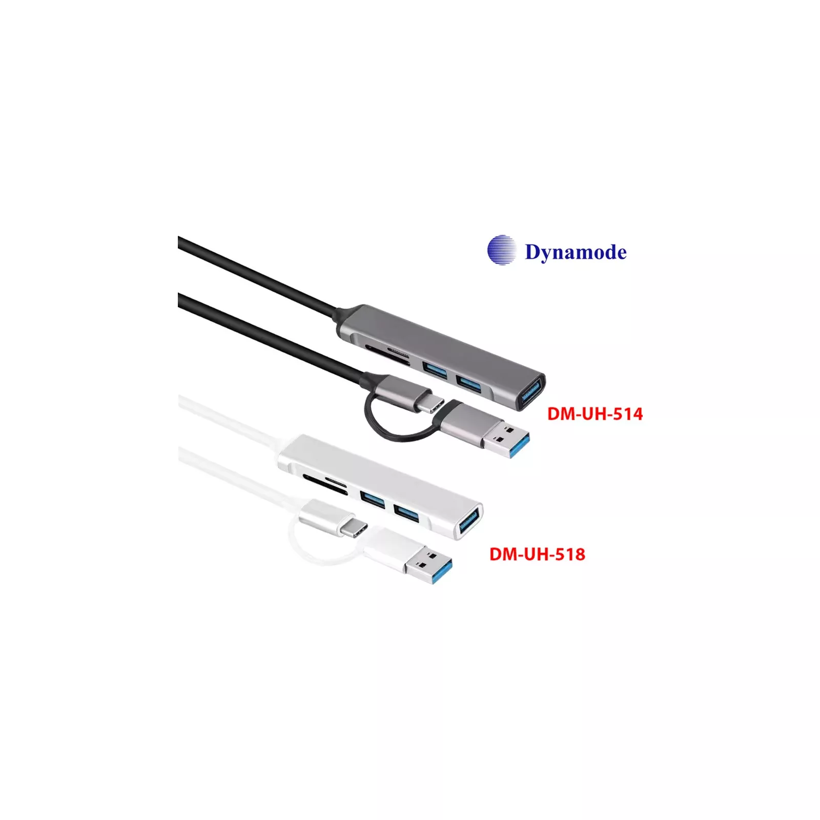 USB-хаб/док-станция 5-в-1 Dynamode DM-UH-518 -это очень компактный, легкий, стильный и эргономичный USB-хаб, добавляющий 3 USB-порта и 2 разъема для SD и MicroSD/TF карт, с возможностью их одновременного использования. Он предназначен для расширения функциональных возможностей вашего портативного или настольного компьютера, планшета или телефона, оснащен и укомплектованным портом USB Type-A или USB Type-C. В данной модели предусмотрены три USB-порта для подключения различных устройств, в том числе внешнего жесткого диска, телефона, клавиатуры, манипулятора, веб-камеры и других. USB-порты используются для обмена данными, а также для зарядки устройств. Легкий и простой в эксплуатации этот USB-хаб подходит для дома и офиса. У него ультра-тонкий металлический корпус толщиной всего 8.5 мм и усиленный гибкий кабель, который позволит разместить его в удобном положении.