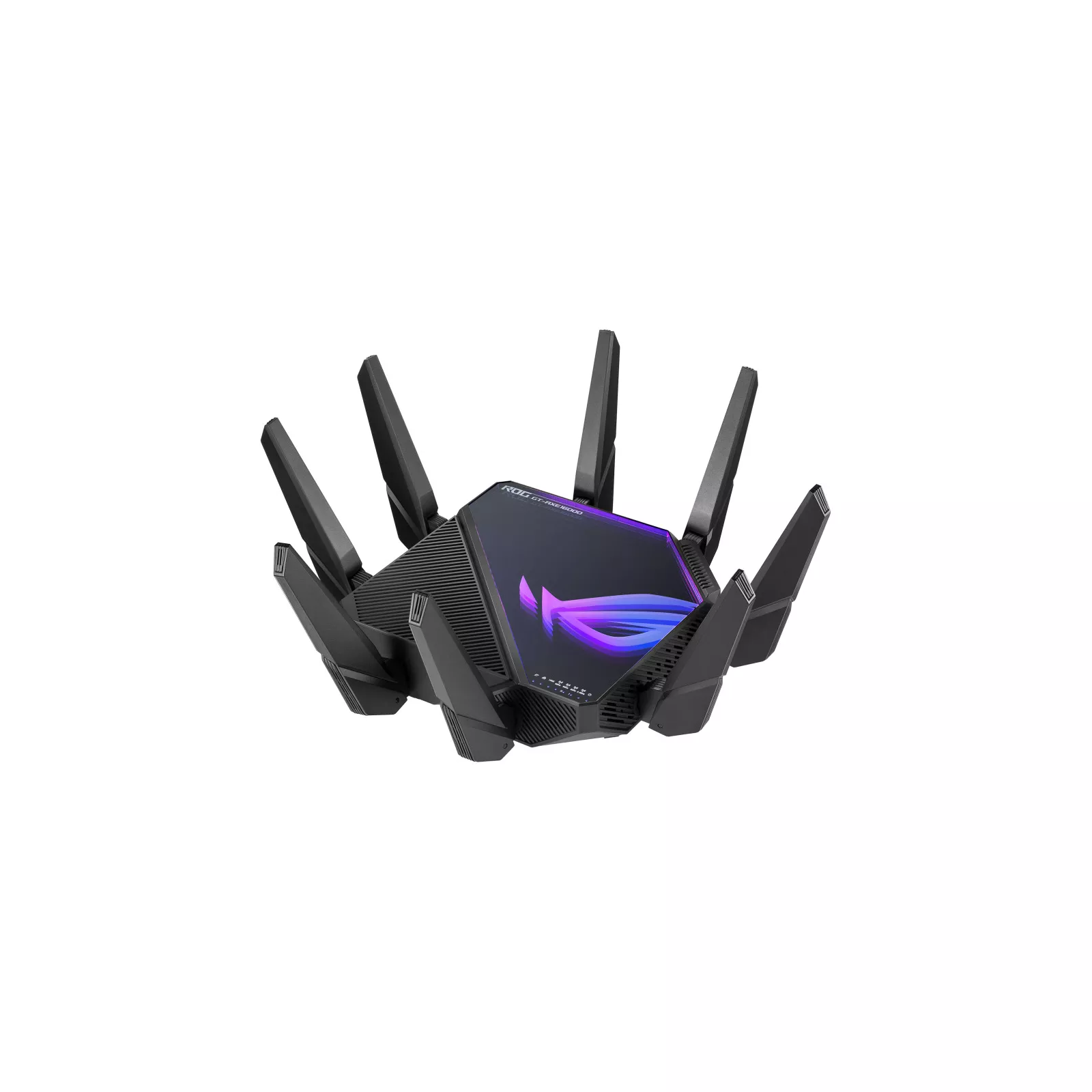 ROG Rapture GT-AXE16000 – первый четырехдиапазонный игровой маршрутизатор стандарта Wi-Fi 6E, обеспечивающий общую скорость передачи данных до 16000 Мбит/с. Устройство работает сразу в четырех беспроводных диапазонах (2.4 ГГц, два 5 ГГц, 6 ГГц) и поддерживает каналы связи шириной 160 МГц.