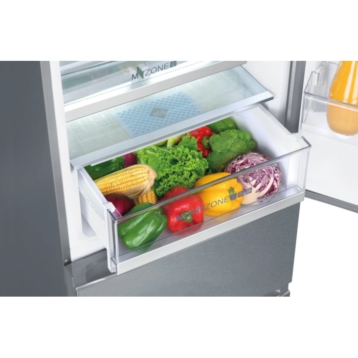 Практический ящик Humidity Zone сохраняет щекотливые продукты свежими вдвое дольше. Это происходит благодаря технологии HCS (Humidity Control System) – мембране из растительных волокон, которая поддерживает и автоматически регулирует влажность на уровне 90%, предотвращая образование конденсата внутри ящика. Адекватная циркуляция прохладного воздуха внутри зоны гарантирует, что хранящиеся продукты дольше сохраняют свою питательную ценность.