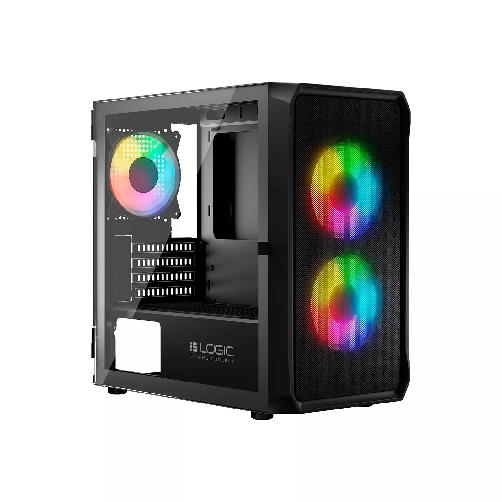 Корпус LogicConcept PORTOS компактного размера поддерживает материнские платы mini-ITX и Micro-ATX. Он позволяет сэкономить полезное пространство и построить компьютерные системы разной производительности. Корпус предлагает много вариантов для расположения внутренних компонентов и организации эффективного охлаждения, поэтому одинаково хорошо подойдет как для работы, так и для развлечений. Небольшие отверстия на месте установки блока питания также улучшают обороты воздуха внутри корпуса и выполняют роль пылевых фильтров. Боковая панель из закаленного стекла открывает великолепный обзор установленной системы. Ваши игры будут еще динамичнее благодаря A-RGB подсветке вентиляторов, которую можно изменять с помощью кнопки управления на верхней панели корпуса. Оптимизированный механизм крепления боковой панели позволяет легко ее открывать, что делает обслуживание системы очень простым.