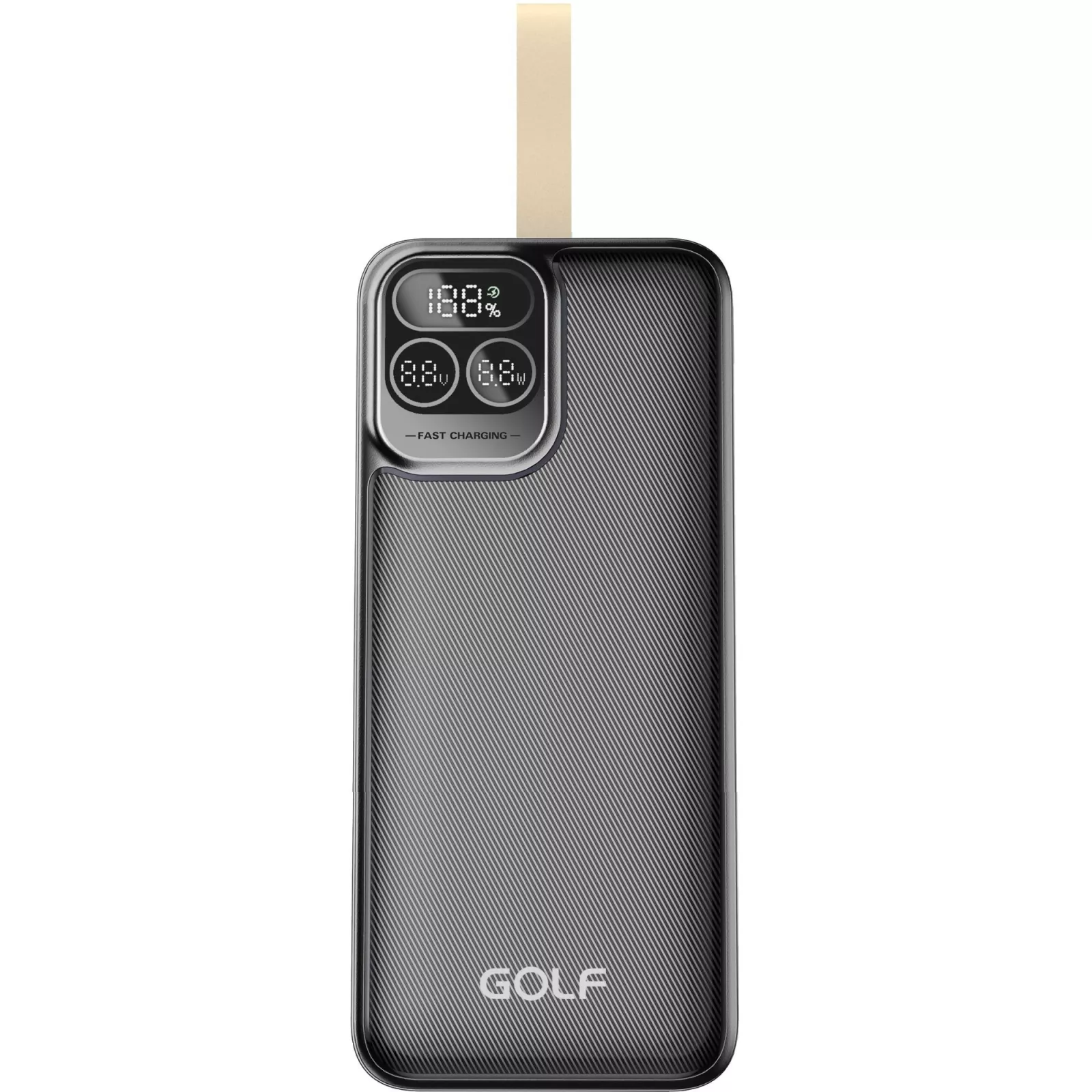 Благодаря тому, что повербанк имеет увеличенную емкость 40 000 мАч, ваши устройства точно не ощутят дефицита заряда. Где бы вы ни оказались, если нужно подзарядиться, просто достаньте Golf P54 40000mah и заряжайтесь прямо на ходу. Относительно небольшие габариты и вес для повербанка такой емкости позволят взять аккумулятор с собой, чтобы не думать о нехватке заряда в течение нескольких дней. Чтобы узнать состояние повербанка, воспользуйтесь дисплеем на корпусе, на котором выводятся все подробности процесса подзарядки.