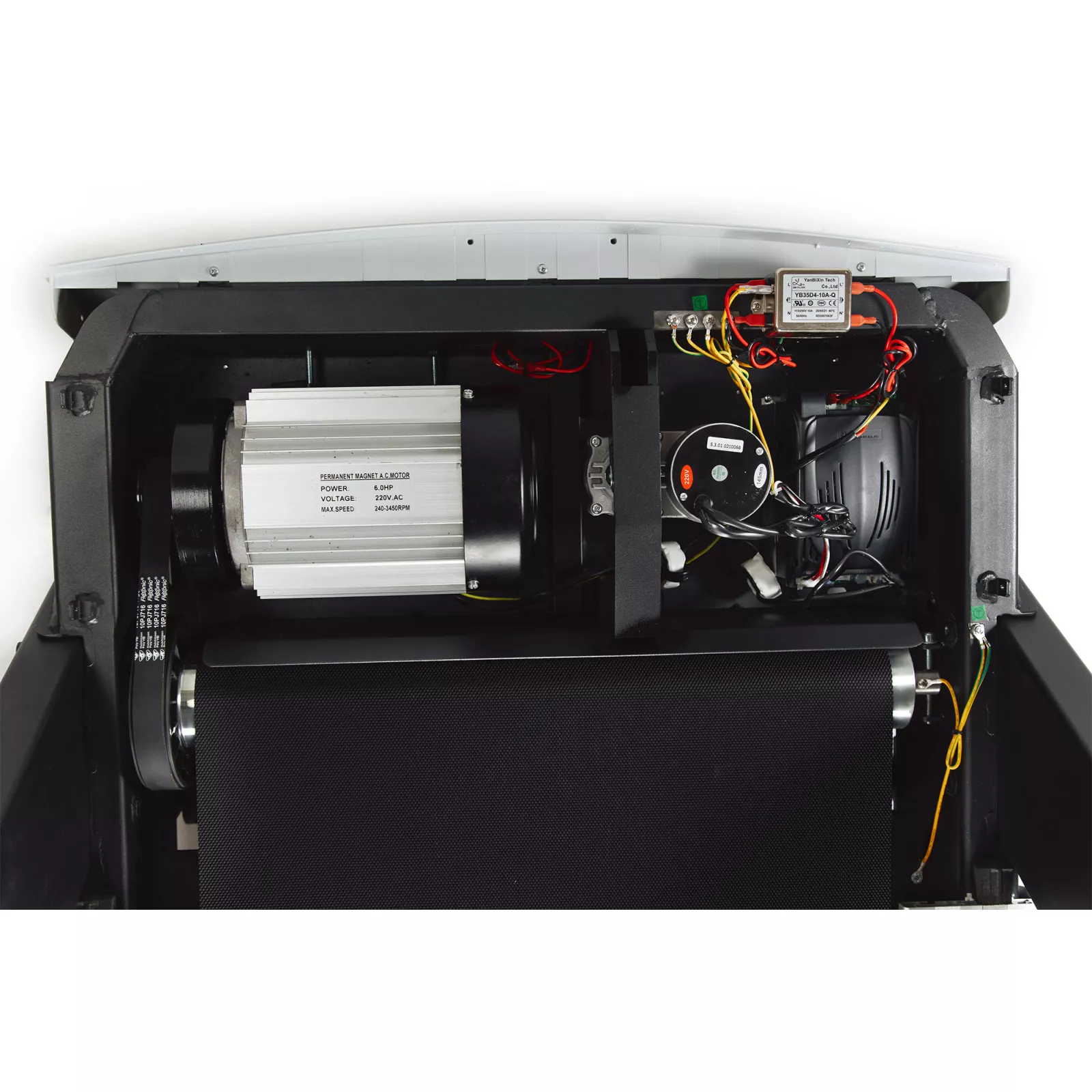 Ключевые особенностиДорожка имеет ряд преимуществ, делающих ее идеальным выбором для многочасовых тренировок. Они направлены на многозадачность и гибкость в работе с большим количеством функций как в спортивном центре, так и в индивидуальном использовании. Конструкция рамы и рычагов рассчитана на высокие нагрузки, поэтому она изготовлена из высококачественной стали с двухслойным антикоррозионным порошковым покрытием. Заявлен максимально и в полном объеме доступный вес пользователя до 180 кг, а рабочий 160 кг. Двигатель переменного тока мощностью 6 лошадиных сил оснащен и укомплектован системой управления. DY-AC drive. Беговые дорожки с двигателями на переменном токе часто используются в коммерческих целях, таких как фитнес-центры, поскольку они обеспечивают более высокую производительность и долговечность по сравнению с дорожками на постоянном токе, которые чаще всего встречаются в домашних моделях. Двигатель переменного тока также позволяет беговой дорожке работать на более высоких скоростях и обеспечивать стабильную работу во время интенсивных нагрузок. Комфортная панель с ярким LED дисплеем совмещена кнопкой экстренной остановки, а также кнопками быстрого доступа, которые позволяют в одно касание изменять скорость и угол наклона бегового полотна. MP3 проигрыватель для прослушивания музыки с вашего плеера станет приятным дополнением. Ваша музыка может проигрываться через динамики в консоли, что позволит вам задать ритм во время интенсивных тренировок.