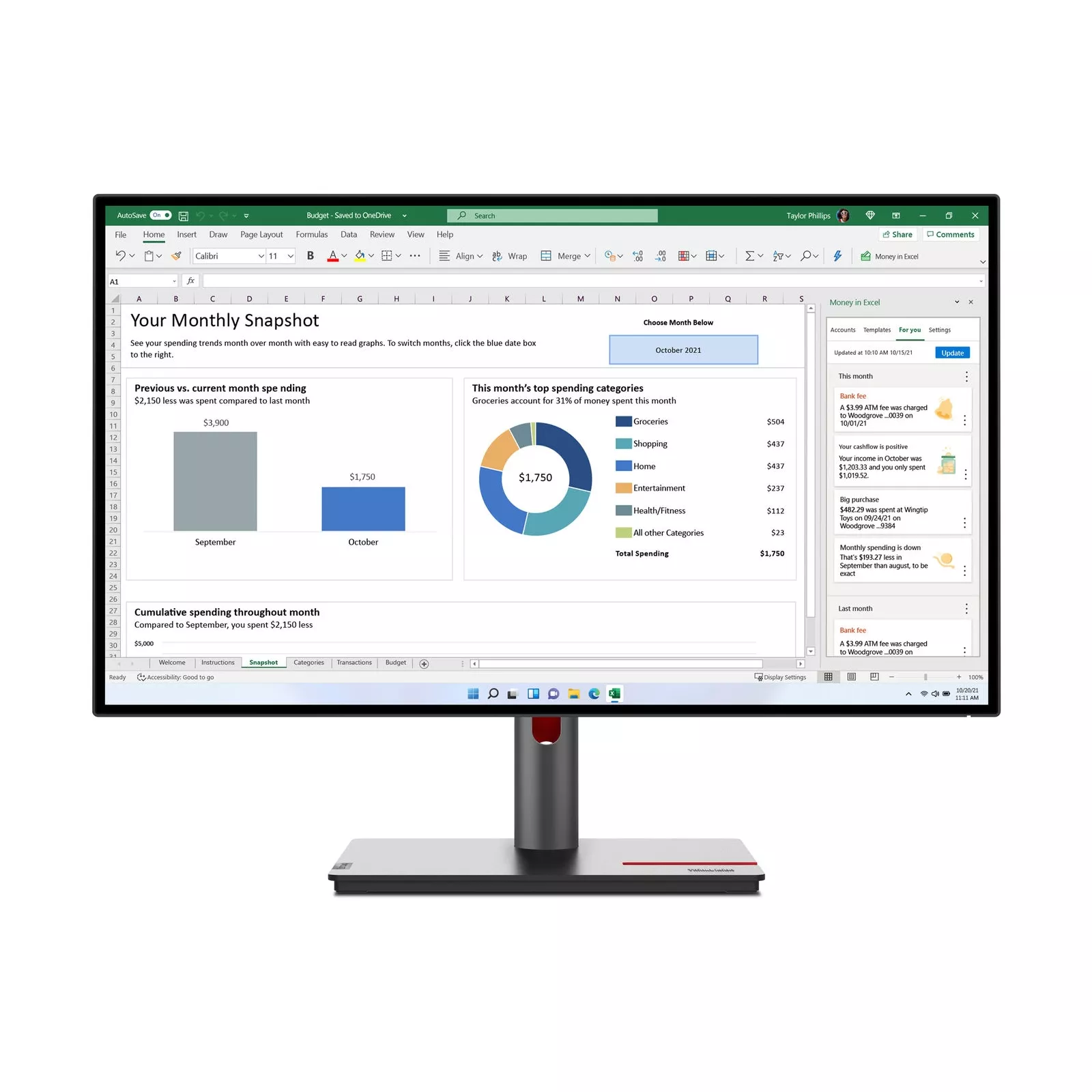 Монитор ThinkVision T27h-30 идеально подходит для глаз благодаря технологии Natural Low Blue Light, которая уменьшает интенсивность вредного синего света, снижая зрительную утомляемость. и напряжение.