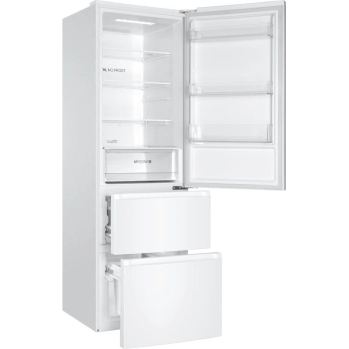 Трехдверные холодильники Haier серии 60 шириной 60 см оснащены и укомплектованы поразительной системой выдвижных ящиков. морозильной камеры, которая не только позволяет более эффективно использовать пространство для ваших замороженных продуктов, но и обеспечивает быстрый доступ ко всей морозильной камере, экономя до 60% больше энергии по сравнению с другими морозильными камерами с нижним расположением морозильной камеры. за постоянную адаптацию необходимых условий для сохранения качества ваших продуктов. 3D 60 Series 3 гарантируют идеальную сохранность ваших продуктов благодаря специально разработанным зонам для управления температурой или влажностью, чтобы дольше сохранять ваши продукты.