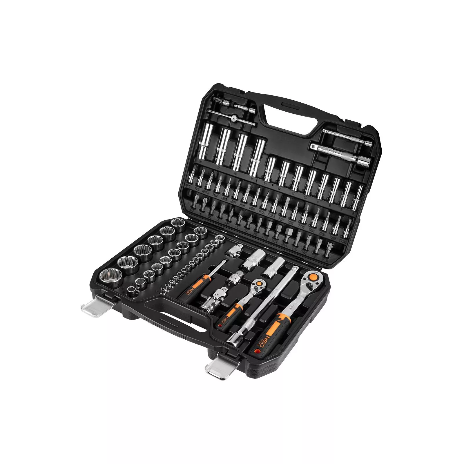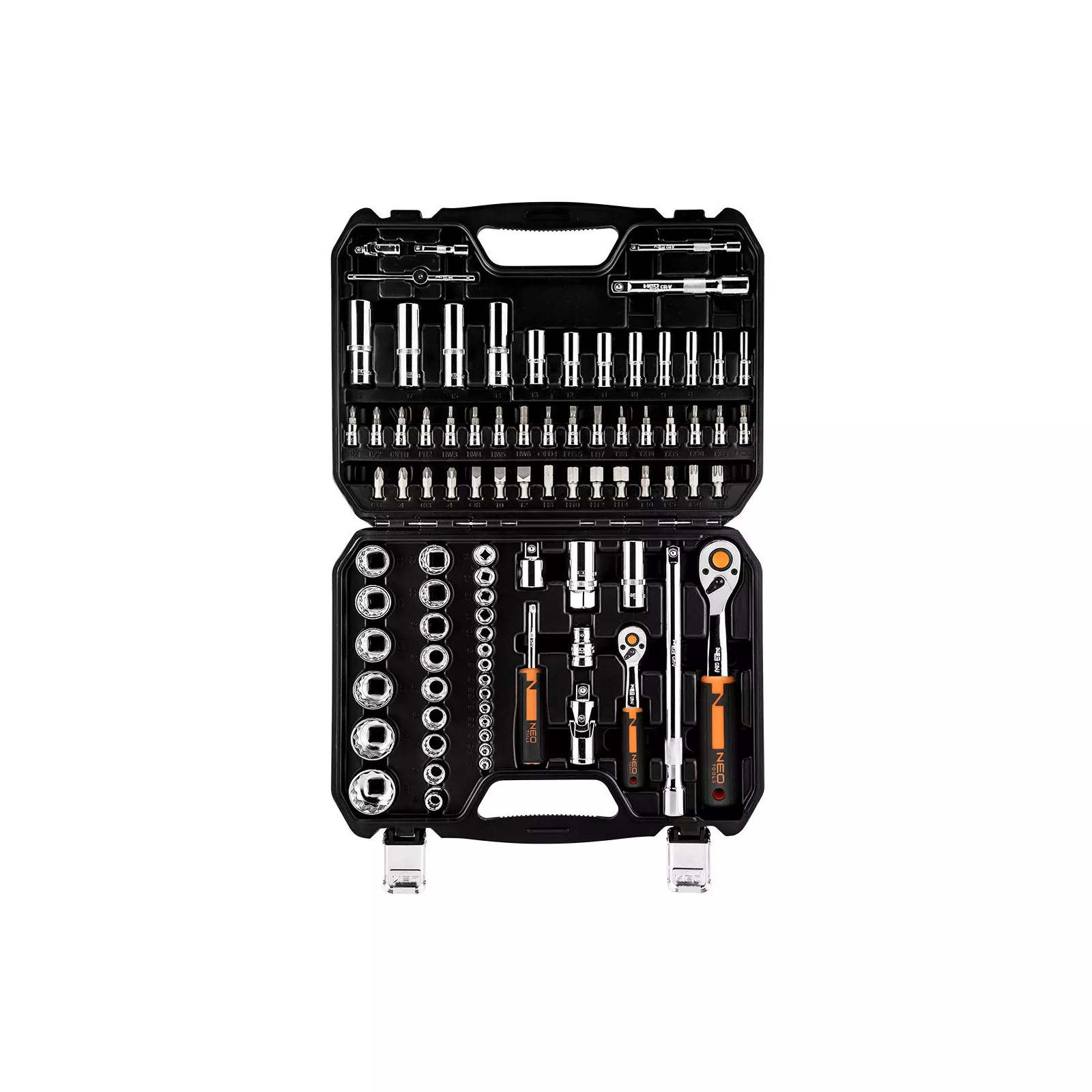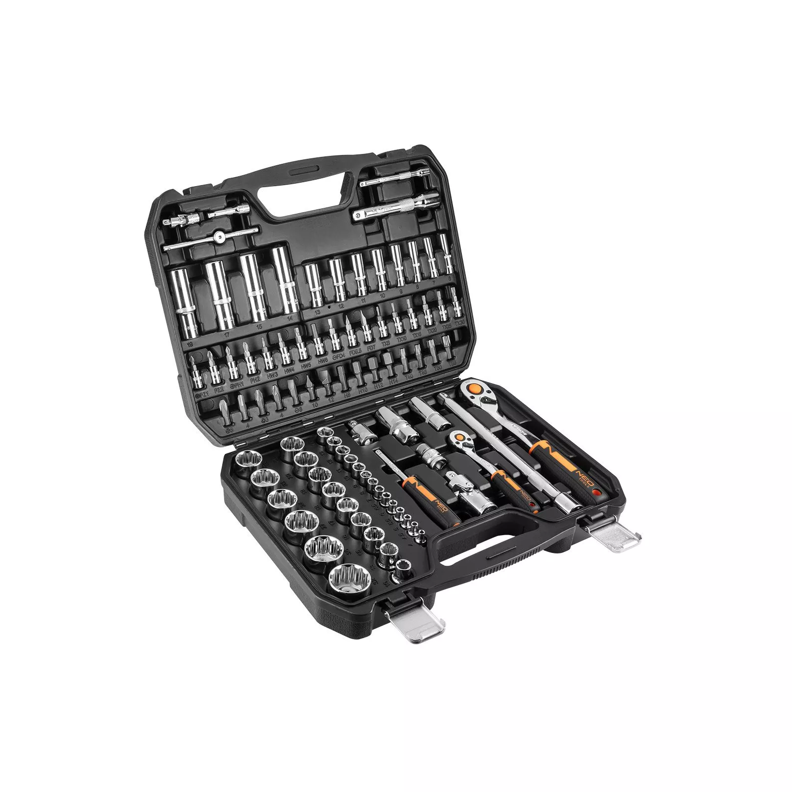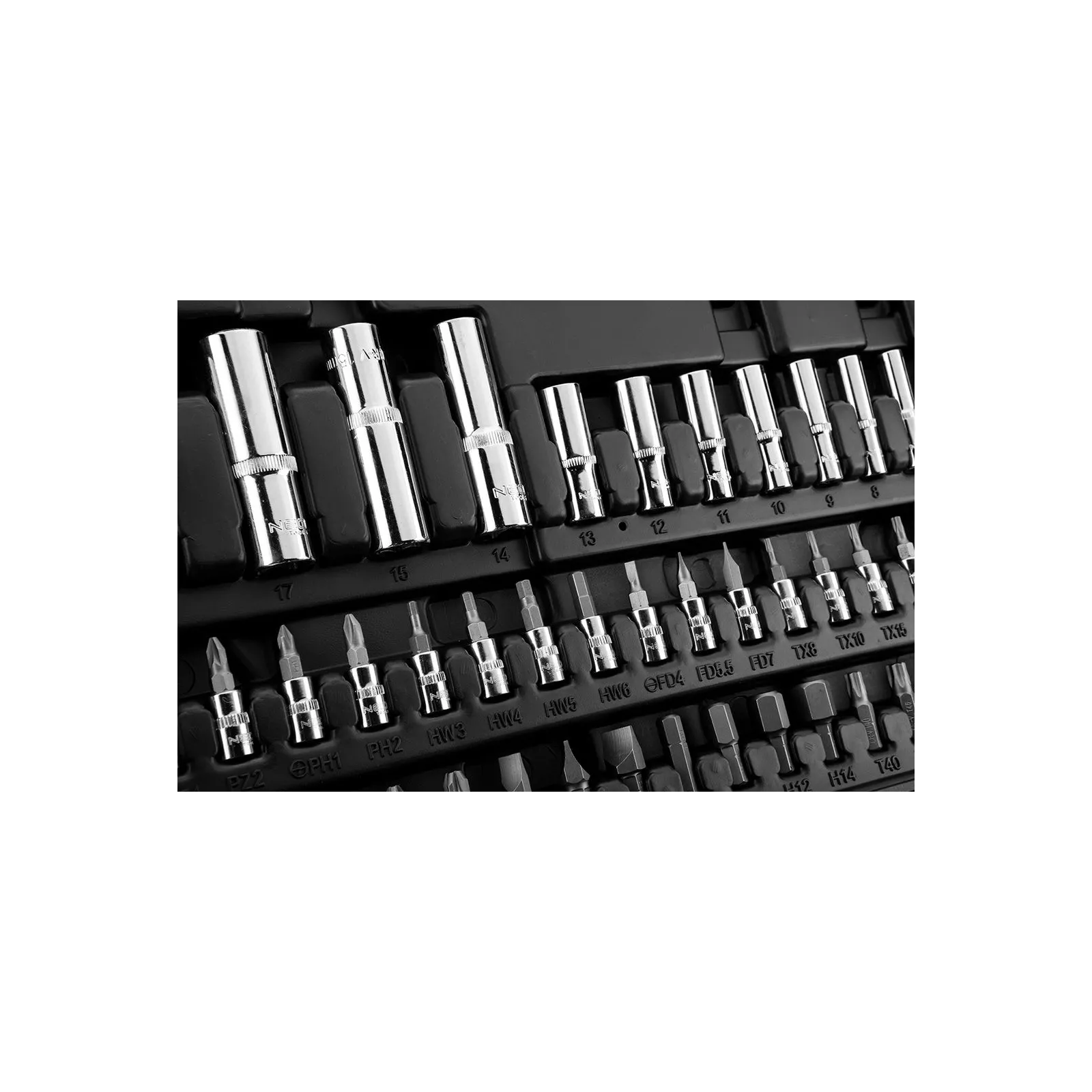 | Комплектация набора | биты, вороток, головки для свечей зажигания, держатель для бит, инструменты для работы с торцевыми головками, кардан шарнирный, торцевые головки, трещотка, удлинитель |