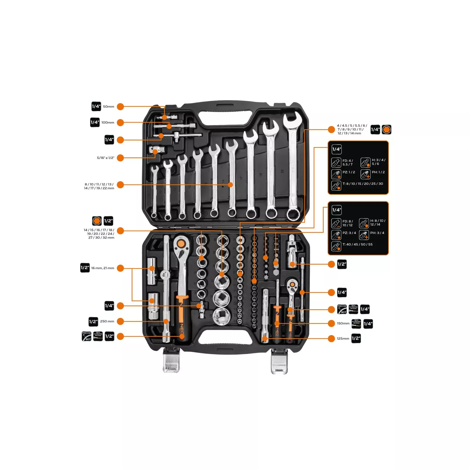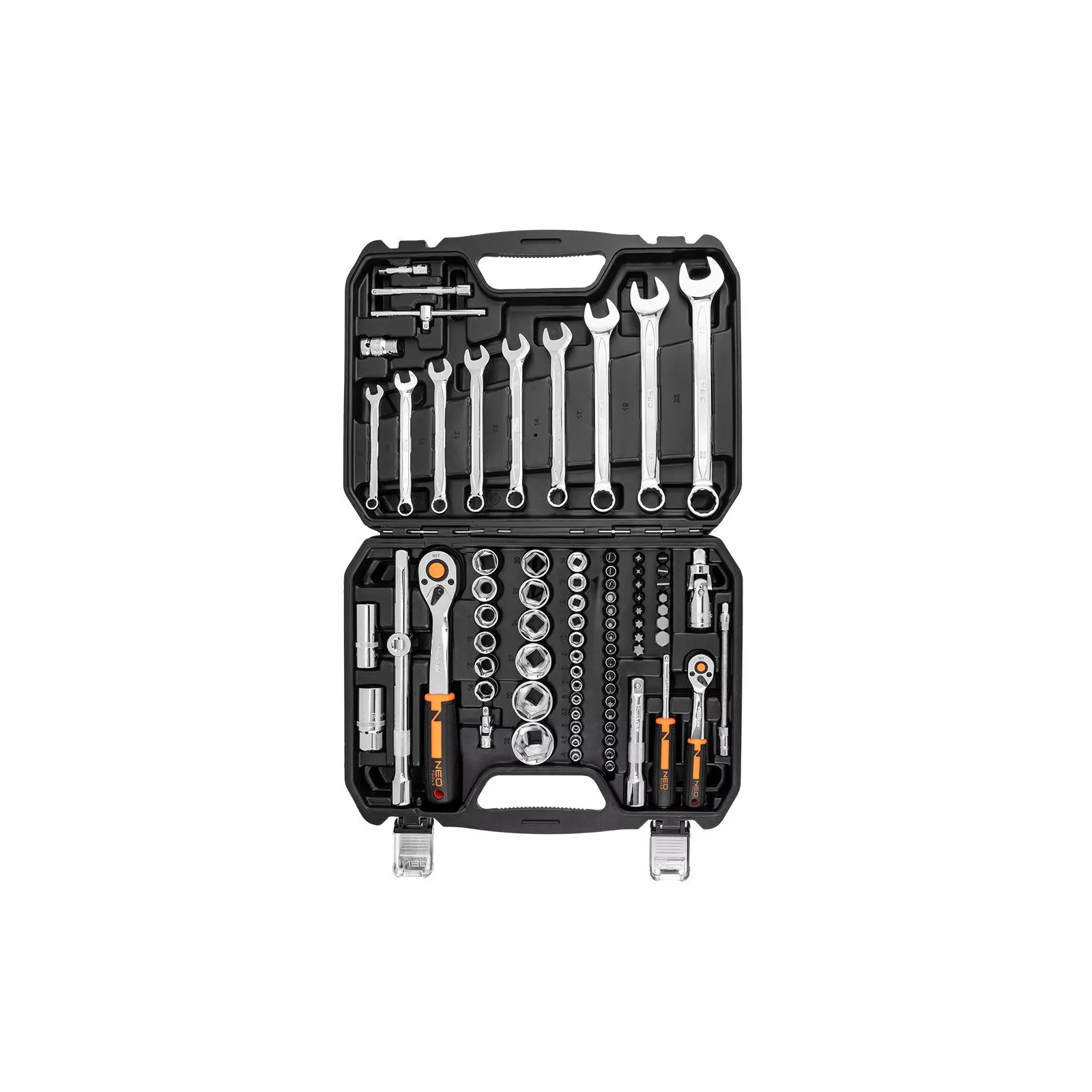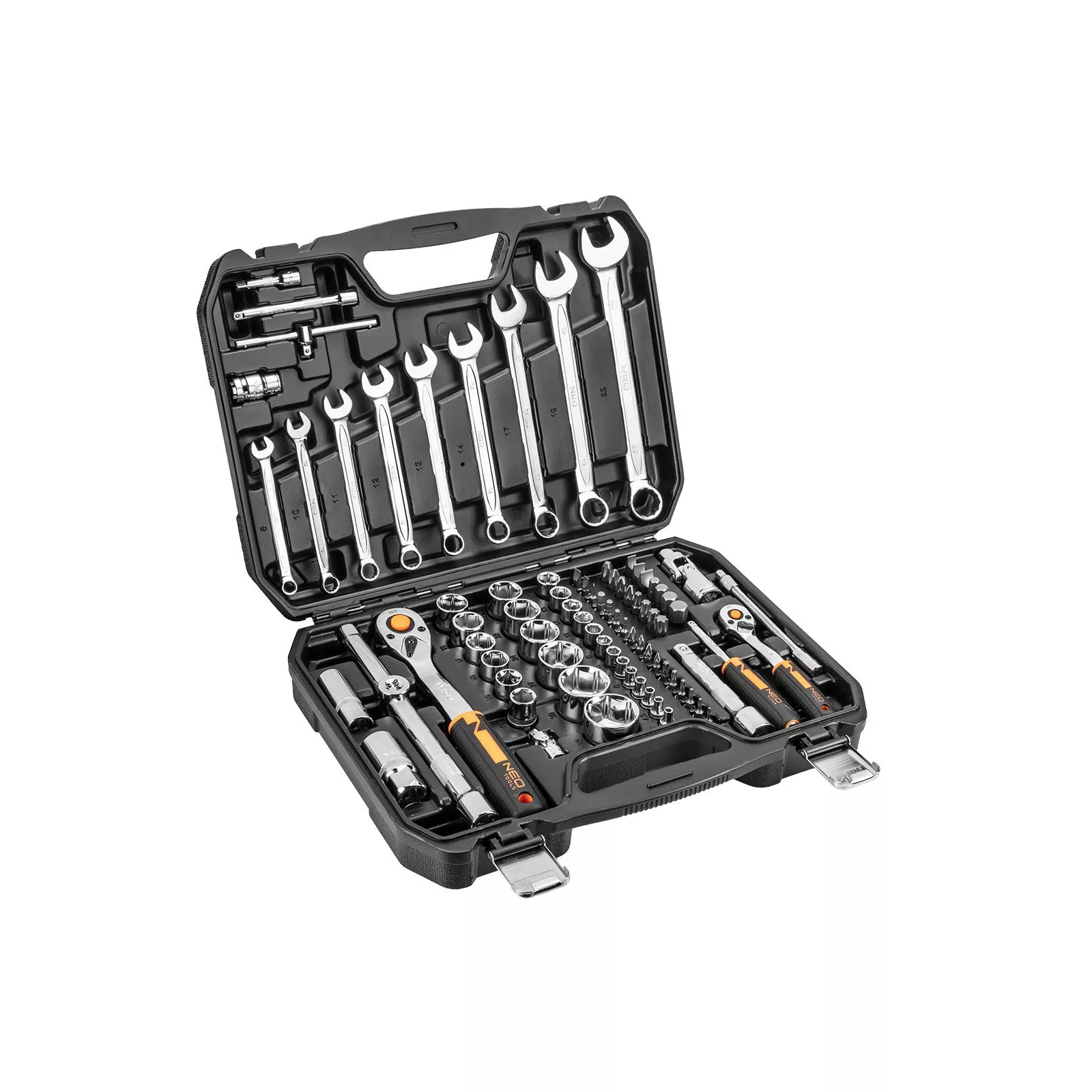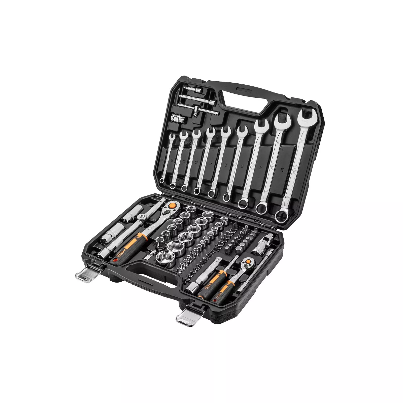| Комплектация набора | биты, вороток, гаечные ключи, головки для свечей зажигания, держатель для бит, инструменты для работы с торцевыми головками, кардан шарнирный, ключ трещоточный, наконечник, рукоятка, торцевые головки, трещотка, удлинитель |