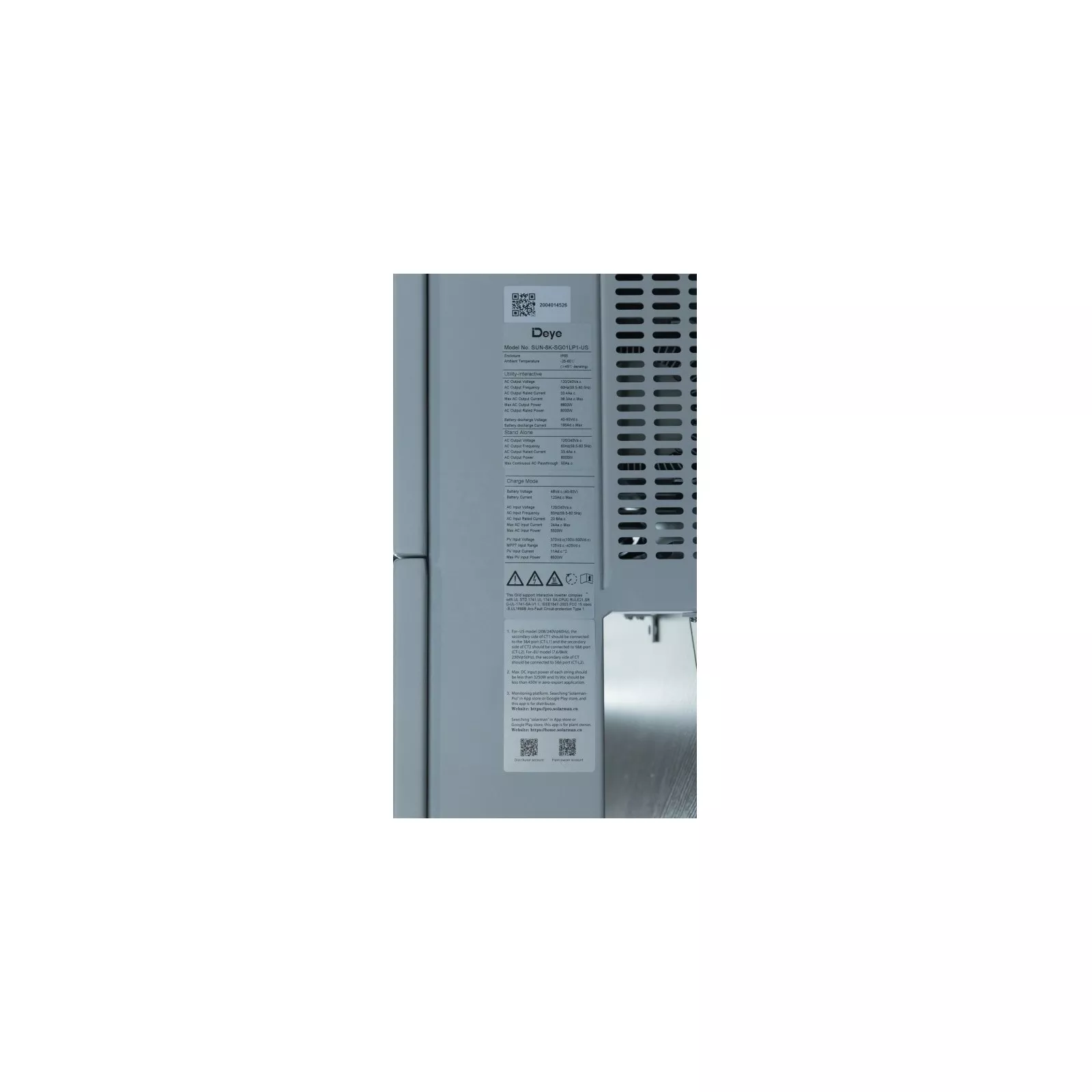 | Мощность инвертора (активная) | 8 кВт |