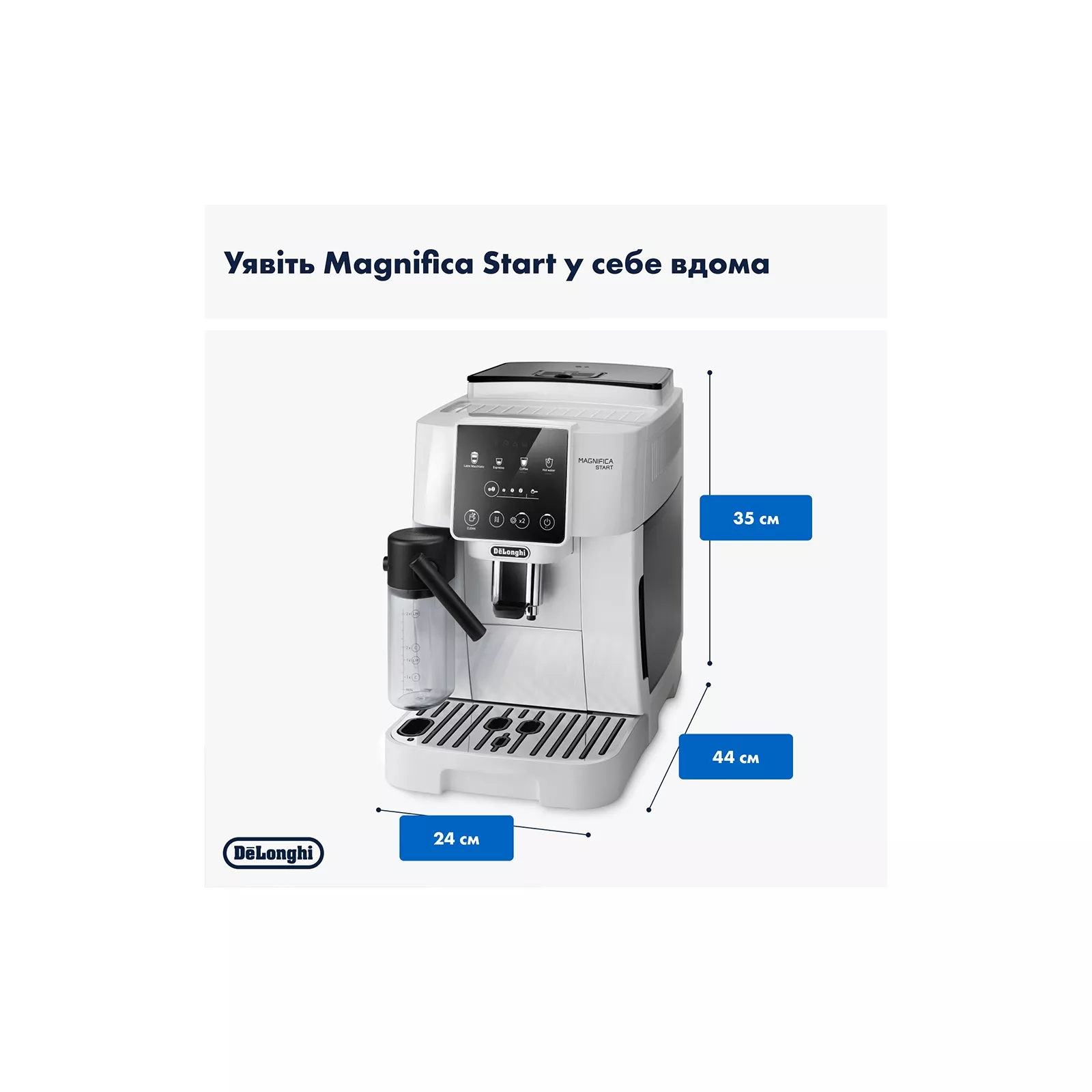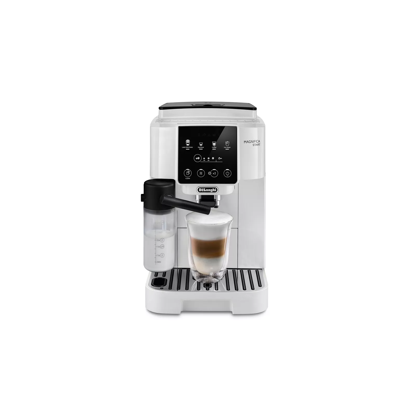 Кофемашина DeLonghi ECAM 220.61 W Magnifica Start приготовит вам ароматный кофе, который своим вкусом перенесет вас в настоящую итальянскую кофейню. Она позволяет приготовить ароматное эспрессо, вкусный капучино и латое макиато одним нажатием кнопки. Прибор оснащен и укомплектован мощным насосом с давлением в 15 бар и возможность выбора 13 ступеней помола. Резервуара для воды вместимостью в 1.8 л полностью хватает для крупной компании. Удобный интерфейс и простота управления непременно порадует ценителей кофейных напитков. Встроенная кофемолка
