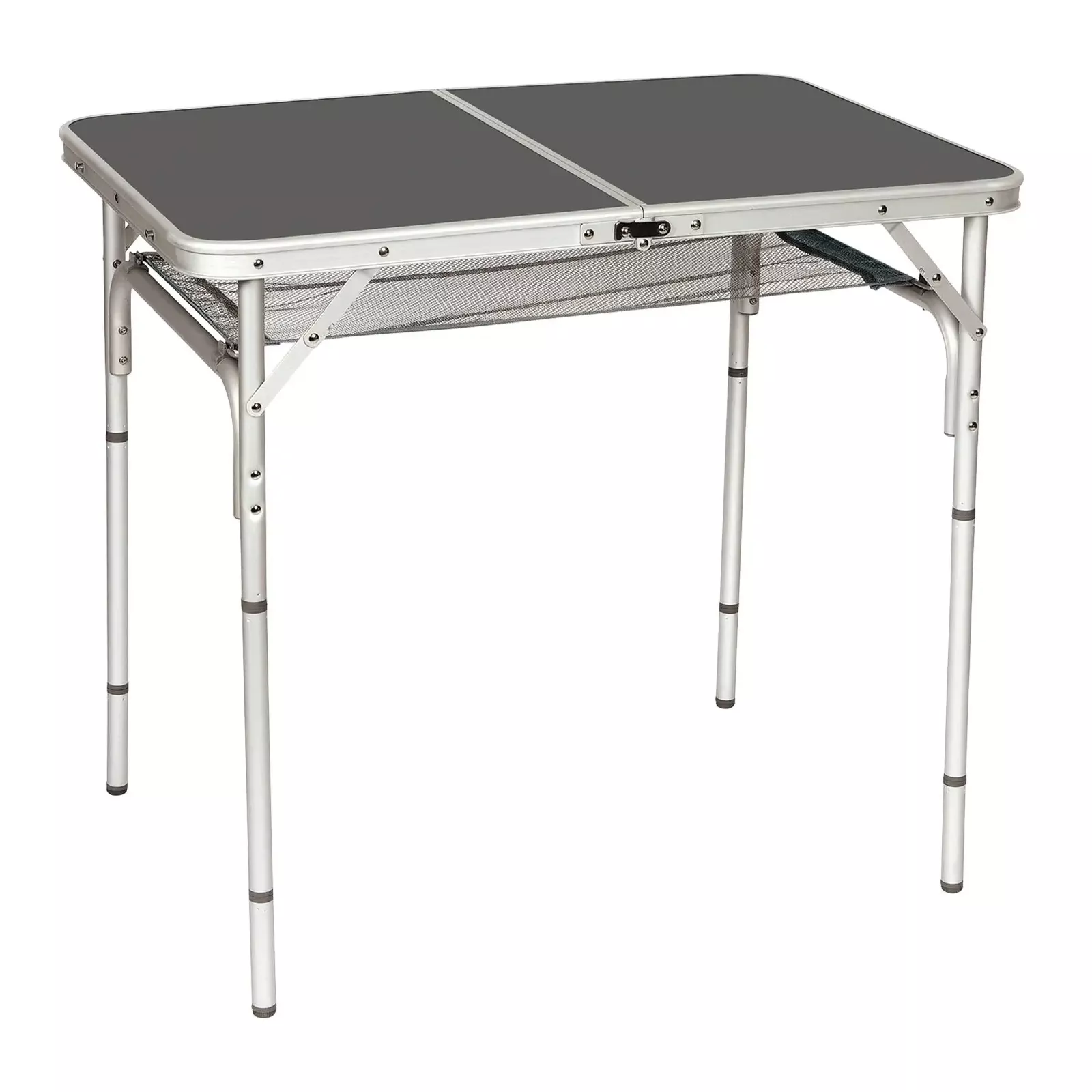 Алюминиевый столBo-Camp Case Model 90x60 cm один из самых высоких кемпинговых столов. При этом ножки стола регулируются по четырем уровням высоты (35/50/67/81 см). Ножку стола можно отрегулировать на неровной поверхности с помощью винтов. Кроме того, стол можно очень компактно хранить и переносить в виде кейса благодаря съемным ножкам, складной столешнице и ручке. Из дополнительных удобств следует отметить, что стол оснащен и укомплектован съемной сеткой, которая располагается под столешницей.