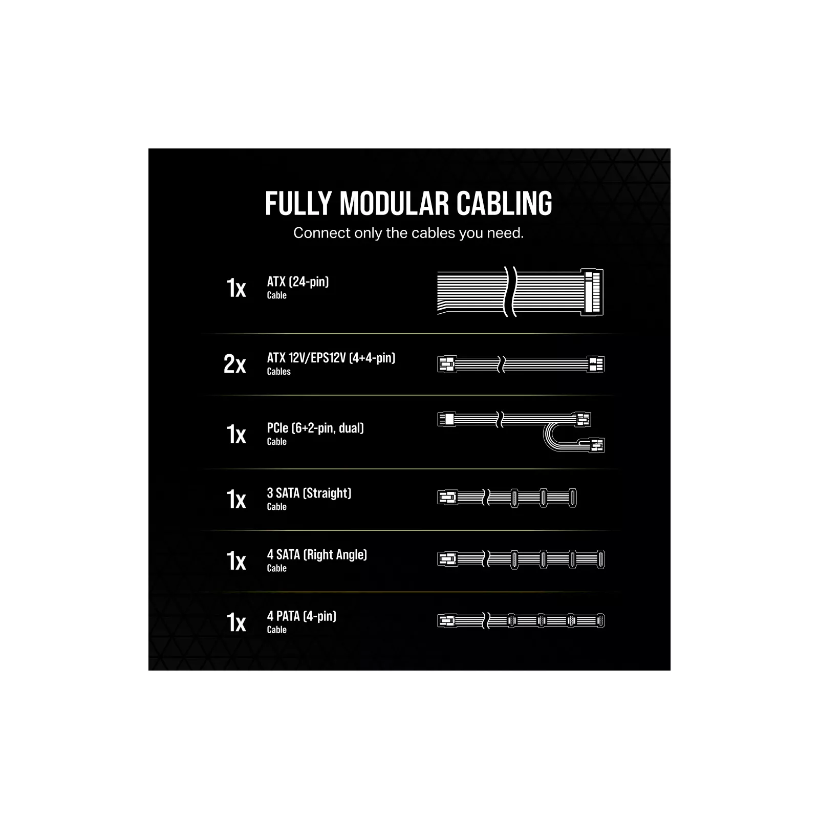 Силовые характеристики являются постоянными, а не пиковыми, что обеспечит надежную защиту ПК. При создании устройств Corsair используются только высококачественные внутренние компоненты, поэтому блоки питания обеспечивают чистое, надежное и непрерывное электропитание. Совместимость с Corsair Link