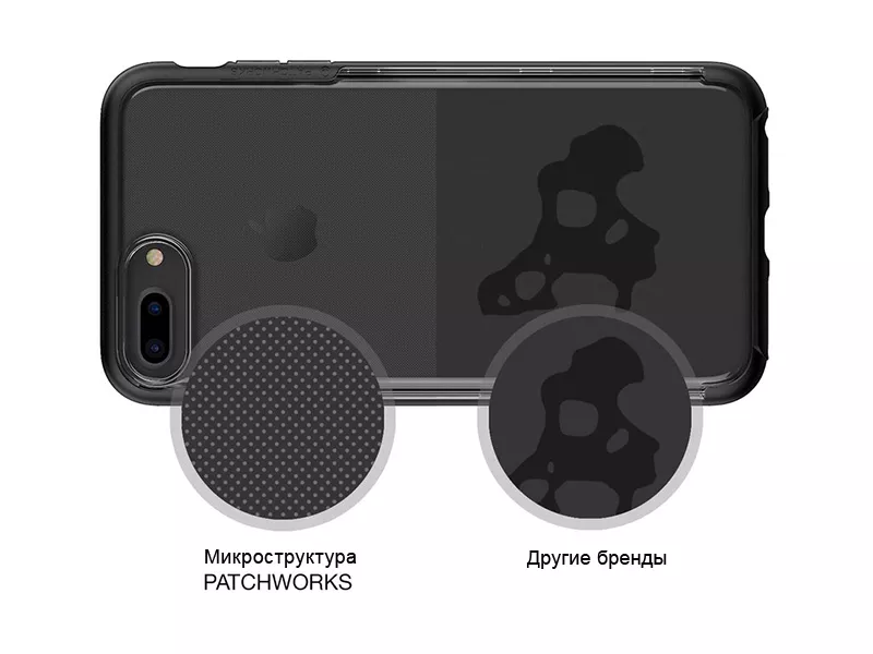 Чехол Patchworks Sentinel состоит из корпуса ТПУ и поликарбонатного бампера. Для достижения не желтеющего, прозрачного корпуса ТПУ без пятен использовались передовые технологии. Микроструктурированная поверхность предотвращает появление смазанных пятен на задней панели при установленном чехле. Поликарбонатный бампер идеально соответствует натуральным цветам iPhone. Этот мощный двухслойный чехол обеспечивает защиту военного уровня обеих сторон корпуса и также защищает основную камеру за счет приподнятых краев.