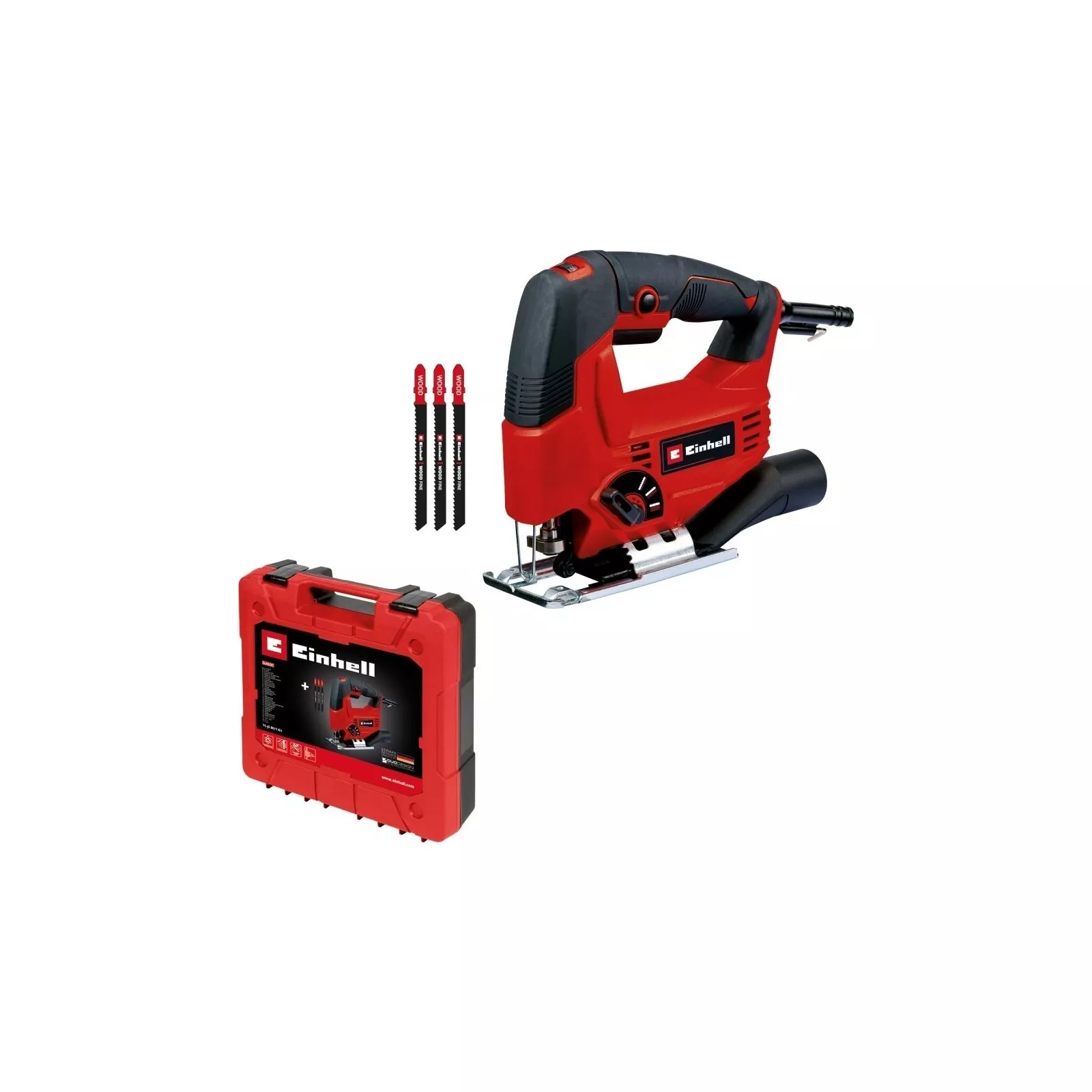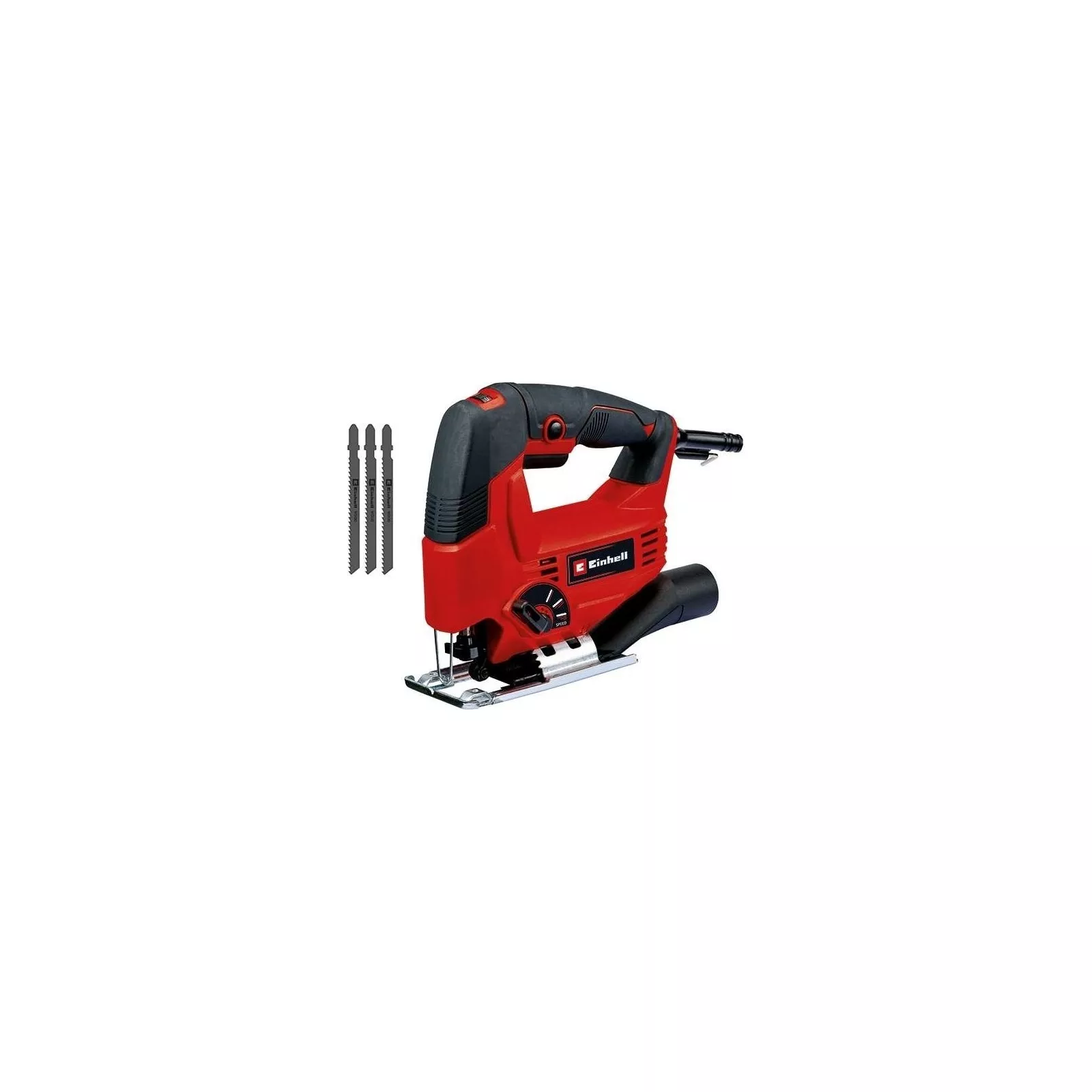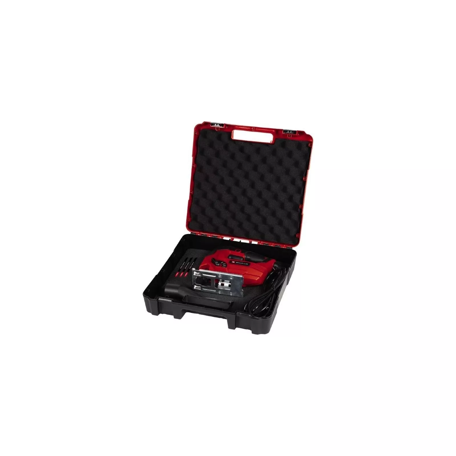 Распакуйте и начните работуЛобзик Einhell поставляется в комплекте с принадлежностями, чтобы вы могли работать сразу после распаковки. Кроме практического кейса для хранения и транспортировки, в комплект поставки входят три пильных полотна с Т-образным хвостовиком для дерева и пластика. Так что ваш следующий проект "сделай сам" не за горами