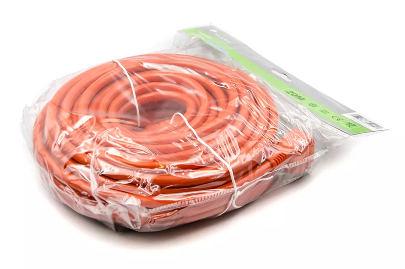 Тип - удлинитель, Суммарная мощность подключенной нагрузки - ≤ 3200 Вт, Количество розеток - 1 розетка, Длина кабеля - 20 м, заземление - есть, оранжевый