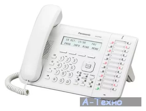 Системный телефон PANASONIC KX-DT543RU - это двухпроводный цифровой системный телефон, который обеспечивает наиболее удобный доступ к функциям АТС и предоставляет пользователю информацию о занятости линий в режиме реального времени. Этот системный телефон работает с АТС серии TDA, TDE, NCP, NS (подключается на цифровой или гибридный порт) и отвечает самым высоким требованиям к качеству и комфорту.