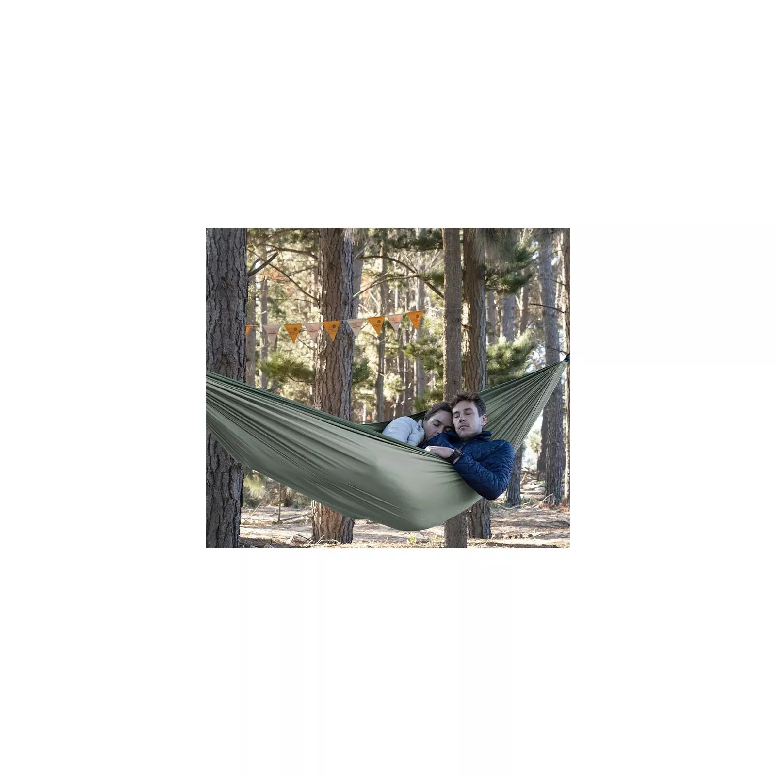 Гамак рекомендуется подвешивать на пролете около 3 м. В качестве точек крепления можно использовать два дерева. Закрепить на них гамак можно с помощью прилагаемых веревок и карабинов. Расстояние над грунтом составляет 50 см. Такой гамак можно взять в поход, он прекрасно подойдет для туризма, кемпинга, велотуризма.
