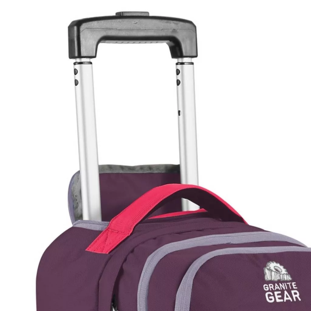 Сумка-рюкзак на колесах Granite Gear Trailster Wheeled 40 - универсальная мостика модель сумки-рюкзака способна вместить ноутбук с диагональю до 17 дюймов, книги, папки, документы, одежду и обед. Сумка оснащена парой надежных углубленных колес, сдвоенной алюминиевой телескопической ручкой и позволяет без проблем, не поднимая, доставить багаж из точки А в точку B. Благодаря наличию лямок с нагрудным стяжкой сумка за считанные мгновения трансформируется в удобный рюкзак. Специальные отделения для ноутбука, смартфона или других деликатных вещей, а также органайзер и карманы для емкостей с напитками помогут оптимально разместить все необходимые вещи, держать их в порядке и защитить от повреждений.