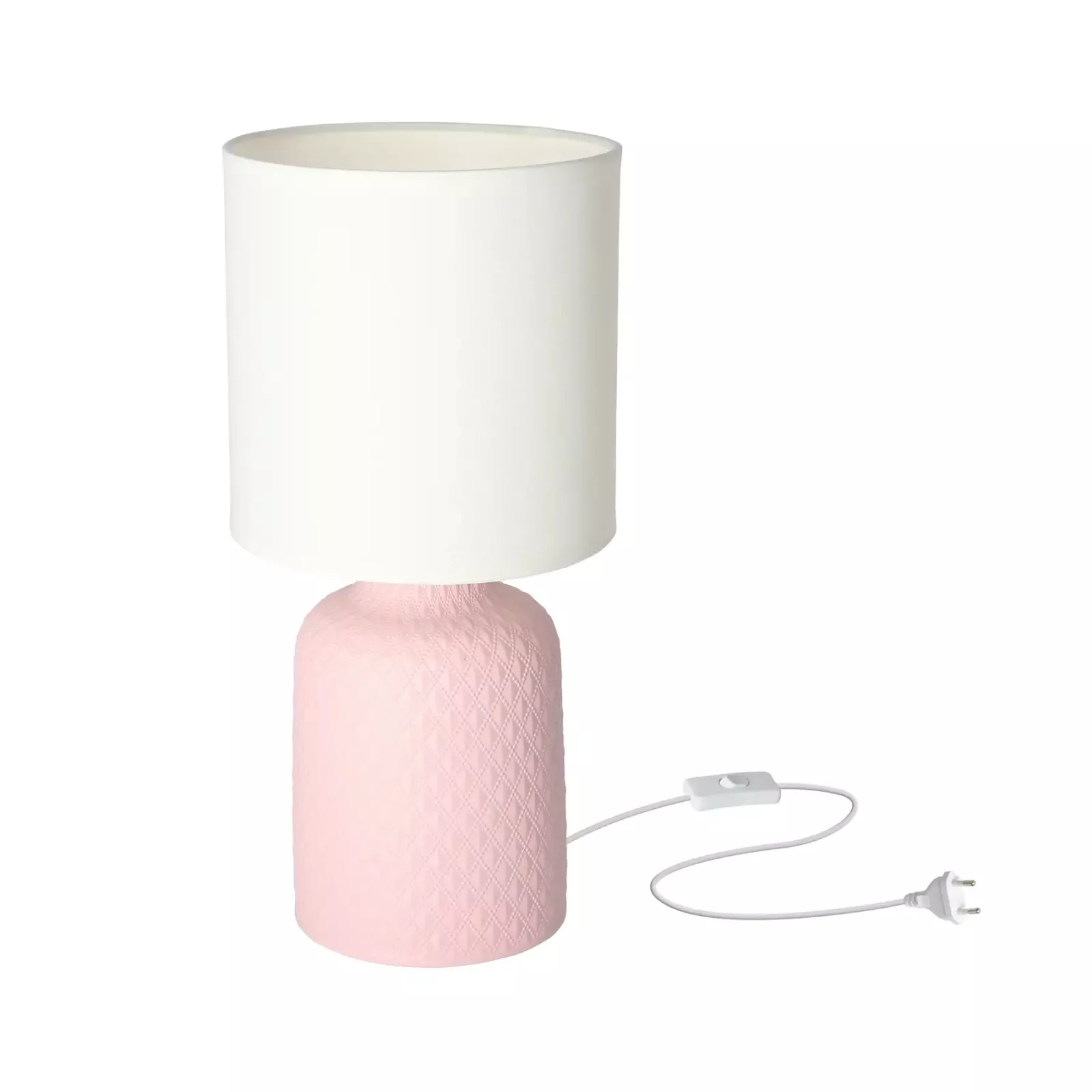 Лампа предназначена для крепления на поверхность, позволяющая легко разместить ее на любом столе или письменный стол. Она имеет выключатель на шнуре, что обеспечивает удобное и легкое управление. Основание лампы изготовлено из керамики и имеет приятный розовый цвет, что придаст ярким краскам к вашему интерьеру.