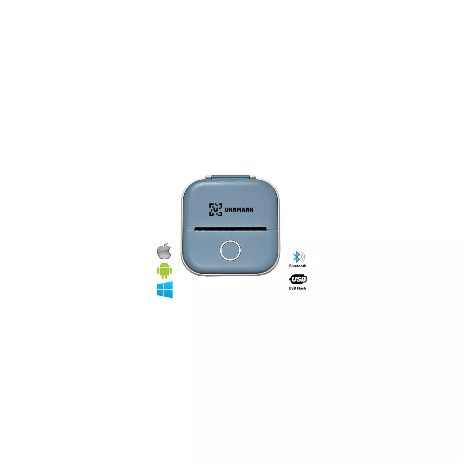 Мини термо принтер UKRMARK P02BL Bluetooth, рулоны 50-57 мм, печать на термобумаге и полимерных этикетках.