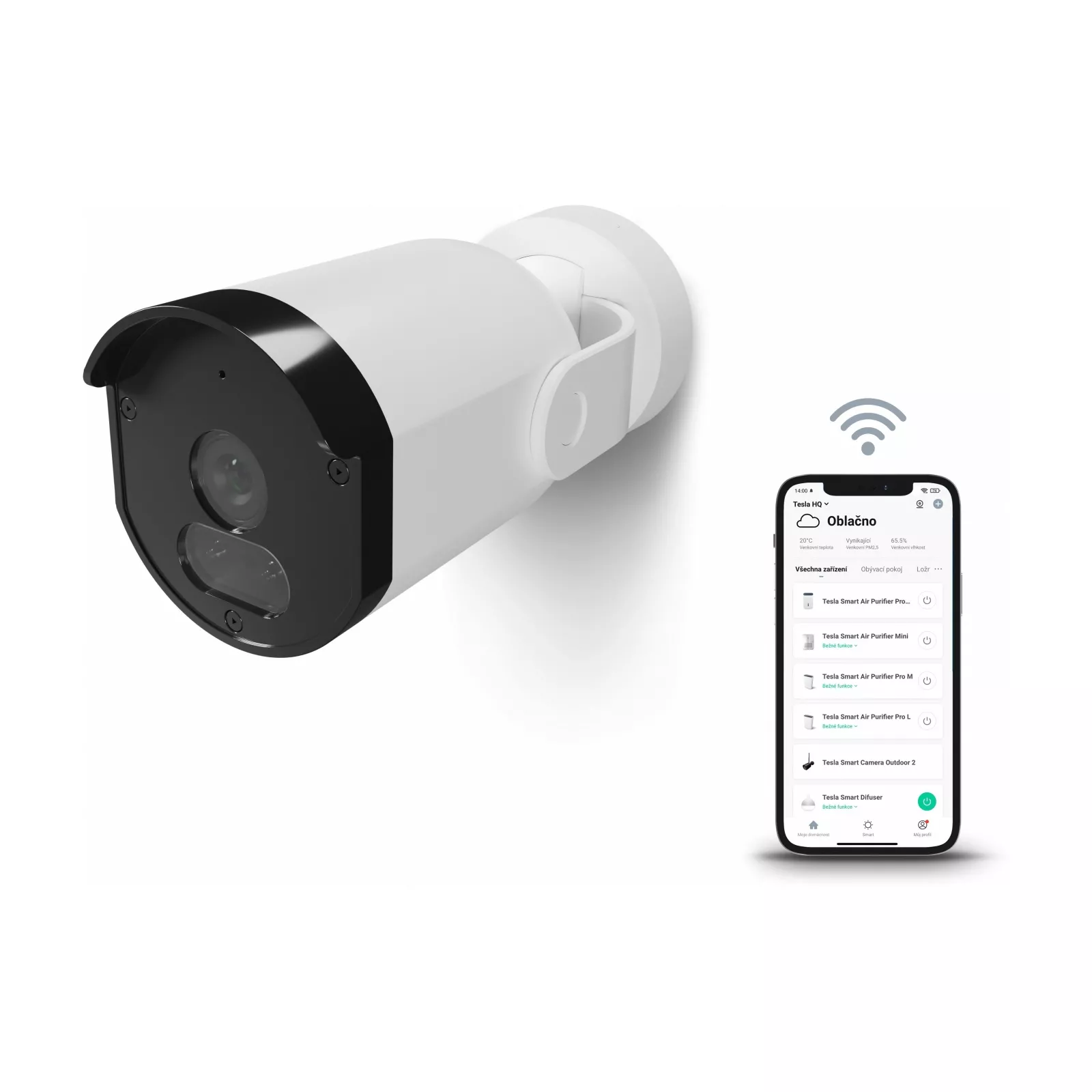 TESLA Smart Camera Outdoor ( 2022) использует 1/2.9'' CMOS-сенсор с разрешением в 2 Мп и изменяющейся частотой кадров, что оптимизирует обнаружение движения.