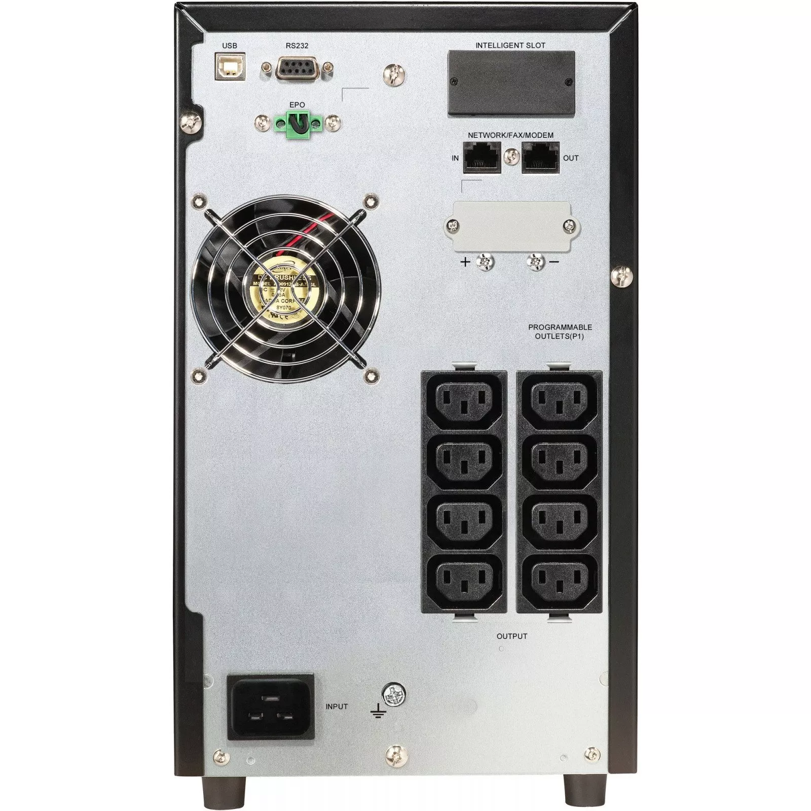 Класс товара - для домашних ПК, Мощность, Вт - 2000 Вт, мощность, ВА - 2000 В*А, форма выходного тока - синусоида, количество АКБ - 3, RS-232/USB.
