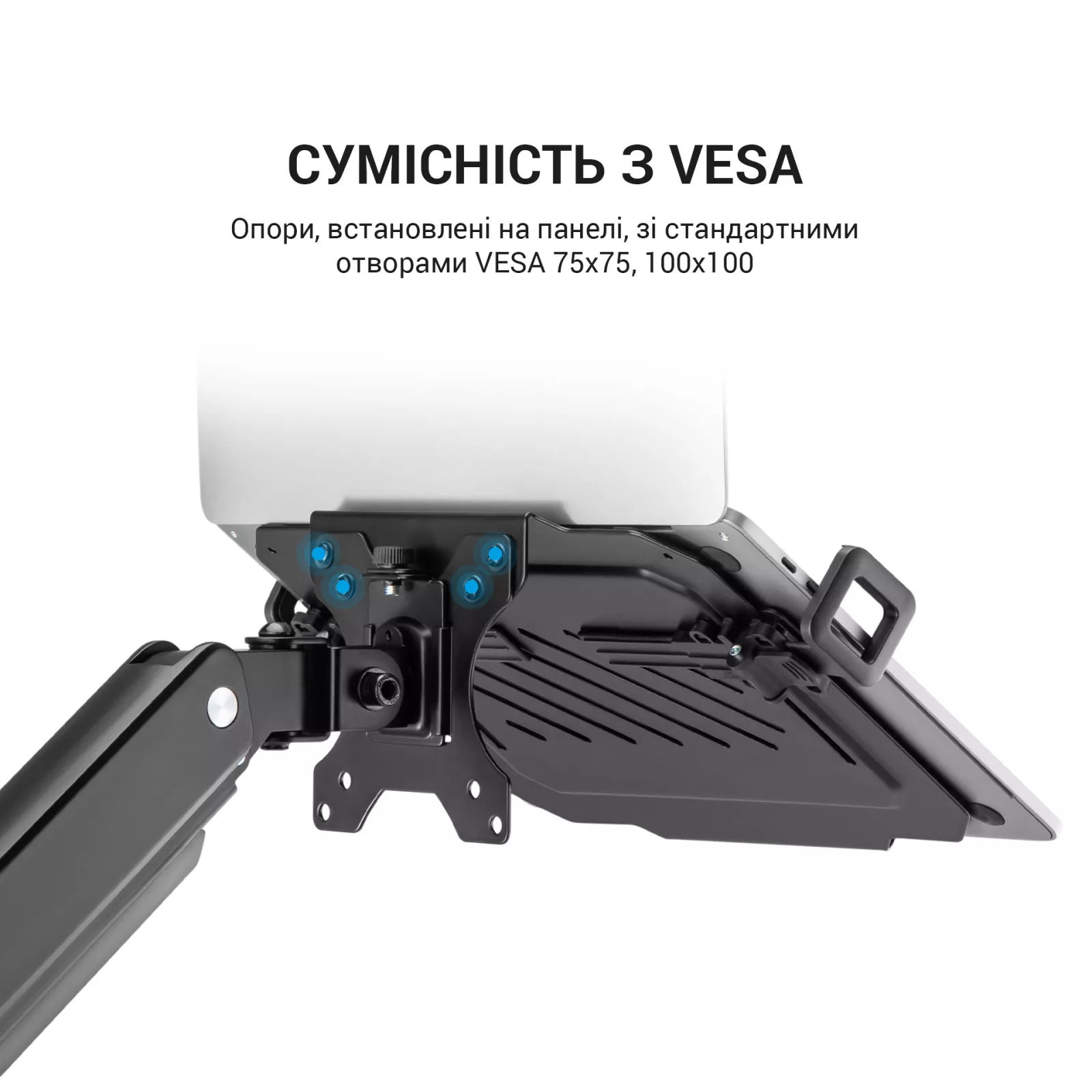 Улучшение рабочих настроек становится доступным благодаря для ноутбука LH313B. Это важное оборудование имеет отверстия VESA (75 x 75, 100 x 100), обеспечивающие легкую совместимость с большинством кронштейнов. Регулируемые зажимы с вырезом для кабеля надежно удерживают ноутбуки размером от 12'' до 17'' обеспечивая доступ ко всем портам.