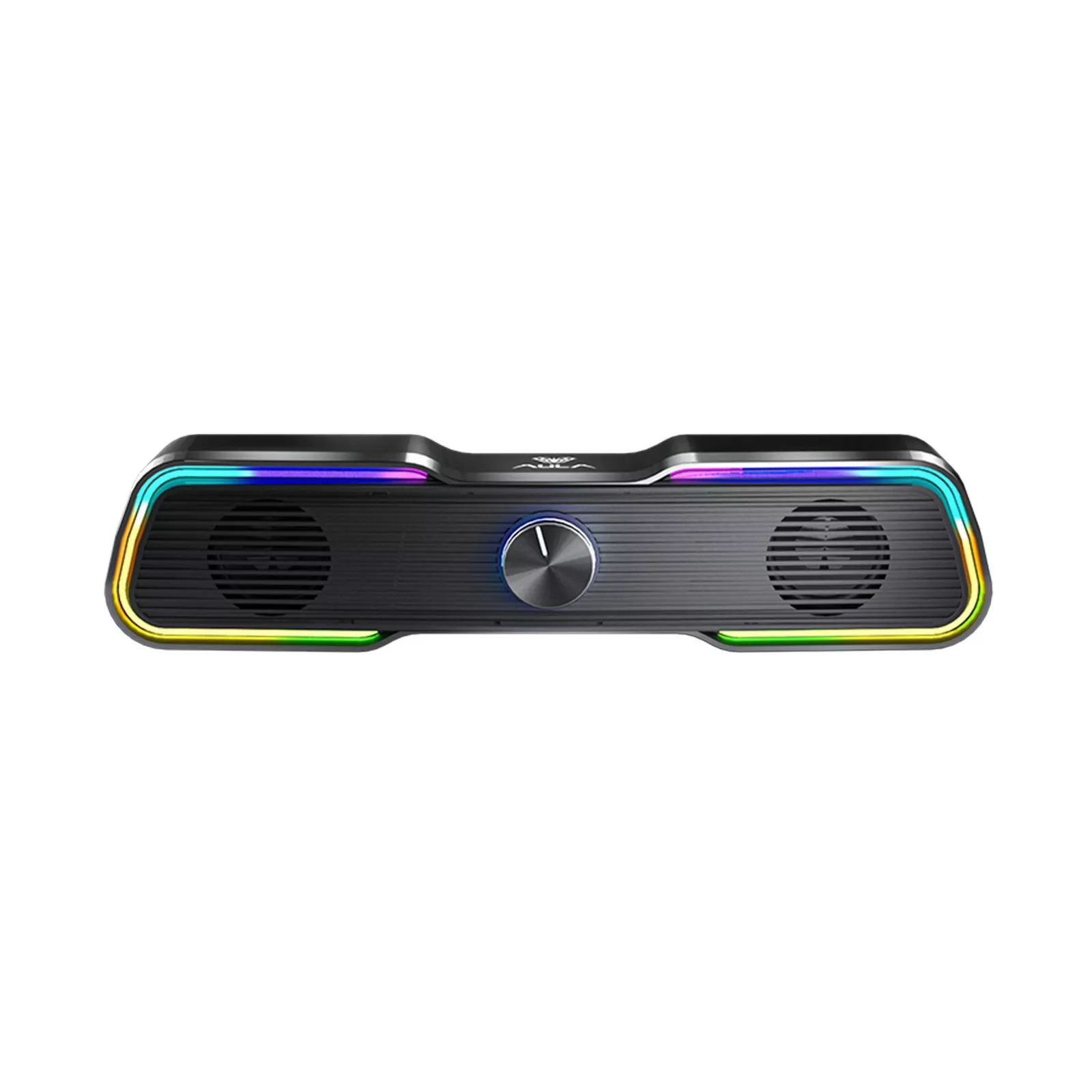 AULA N-169B в лаконичном черном корпус стильно смотрится на фоне любого интерьера, не занимает много места на узкой полке. Аудиосистема формата 2.0 работает мощностью 6 Вт. Питание от USB-порта не требует поиска свободной розетки при подключении саундбара к ТВ, компьютеру и другим устройствам. AULA N-169B оснащен и укомплектован стандартным AUX-входом для приема сигнала без потери качества. Градиентная RGB-подсветка – приятное дополнение при прослушивании любимой музыки. Удобный регулятор на передней панели корпуса позволяет одним движением выбирать желаемую громкость.