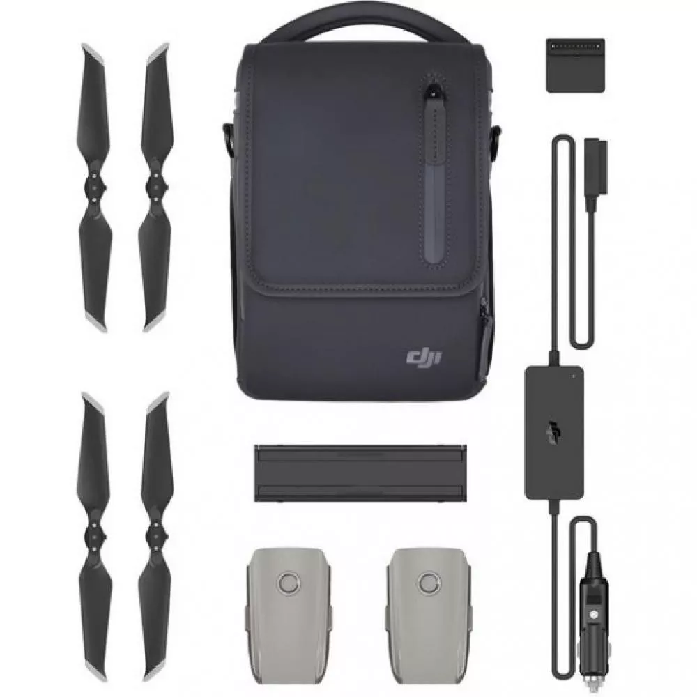 Mavic 2 Fly More Kit включает в себя две дополнительные батареи для полетов, автономное зарядное устройство Mavic 2, зарядное устройство для аккумуляторов, адаптер для питания аккумуляторов, пропеллеры с низким уровнем шума и сумку Mavic 2 Shoulder Bag, обеспечивающую защиту дрона и комплектующих во время носки.