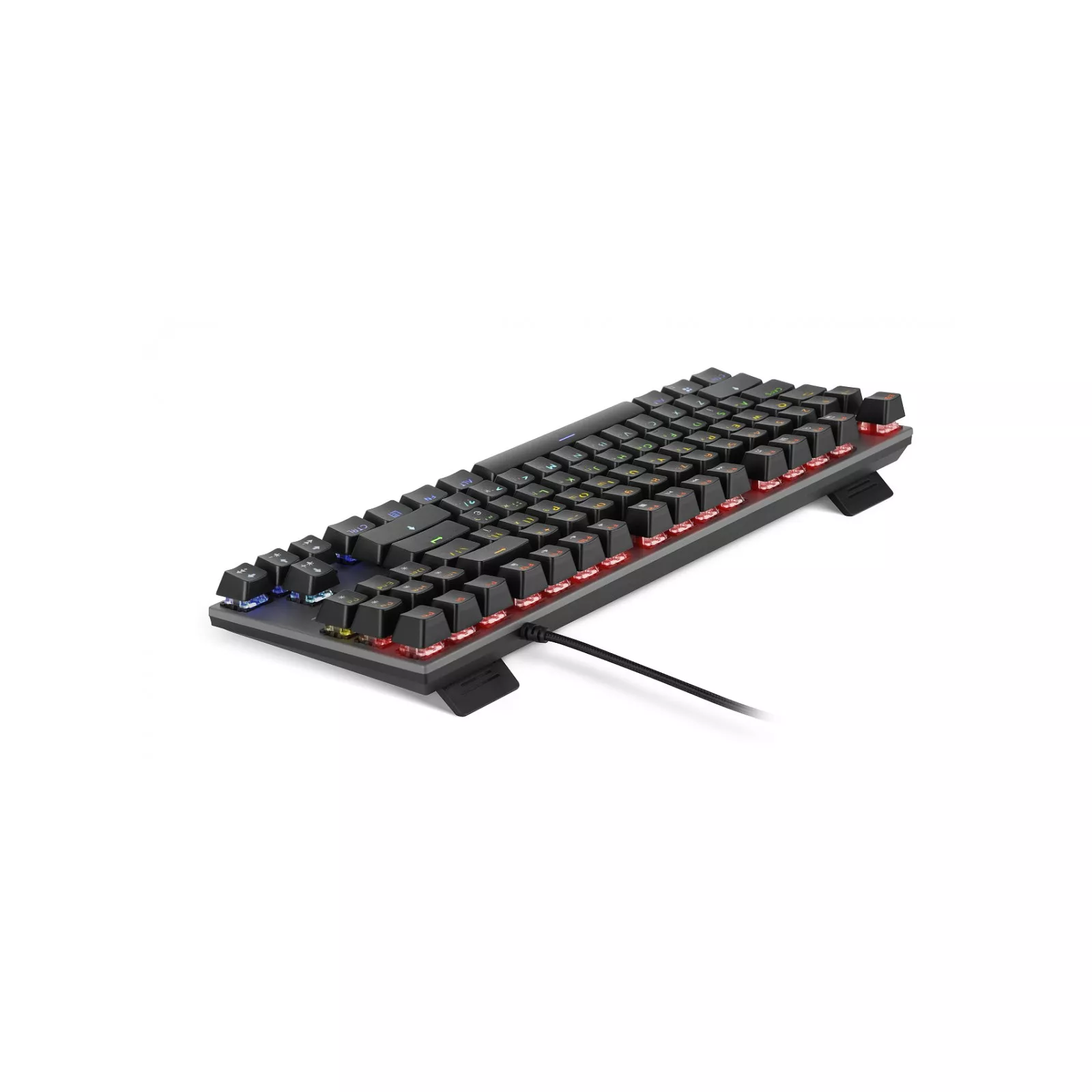 Производитель также позаботился о надежности своего изделия, добавив металлическую пластину, усилив конструкцию платы. В контактах клавиш используются механические переключатели Huano Blue, а клавиши устойчивы к истиранию. Заявленная наработка на отказ составляет более 60 млн. нажатий. Модель реализована в формате TKL, благодаря чему она не занимает много места.