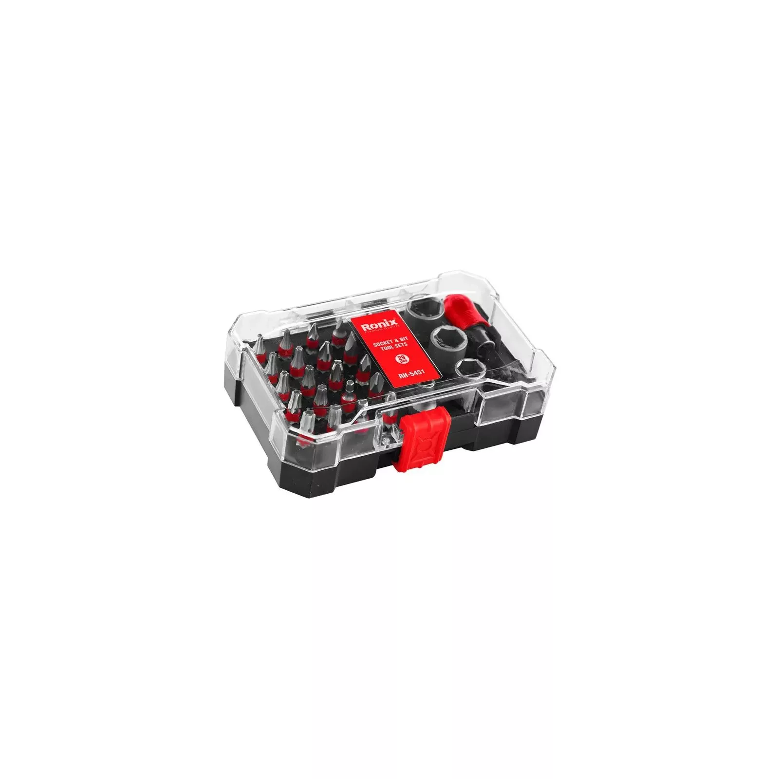 Корпус и материалНабор отверточных насадок Ronix RH-5451 - это практичный и удобный инструмент, поставляется в кейсе из ABS+PS материала, идеально подходящего для удобного хранения и транспортировки. Набор состоит из 28 штук высокопрочных насадок из стали S2 и хром-ванадиевых торцевых головок, которые обеспечивают высокий крутящий момент для большей мощности закручивания.