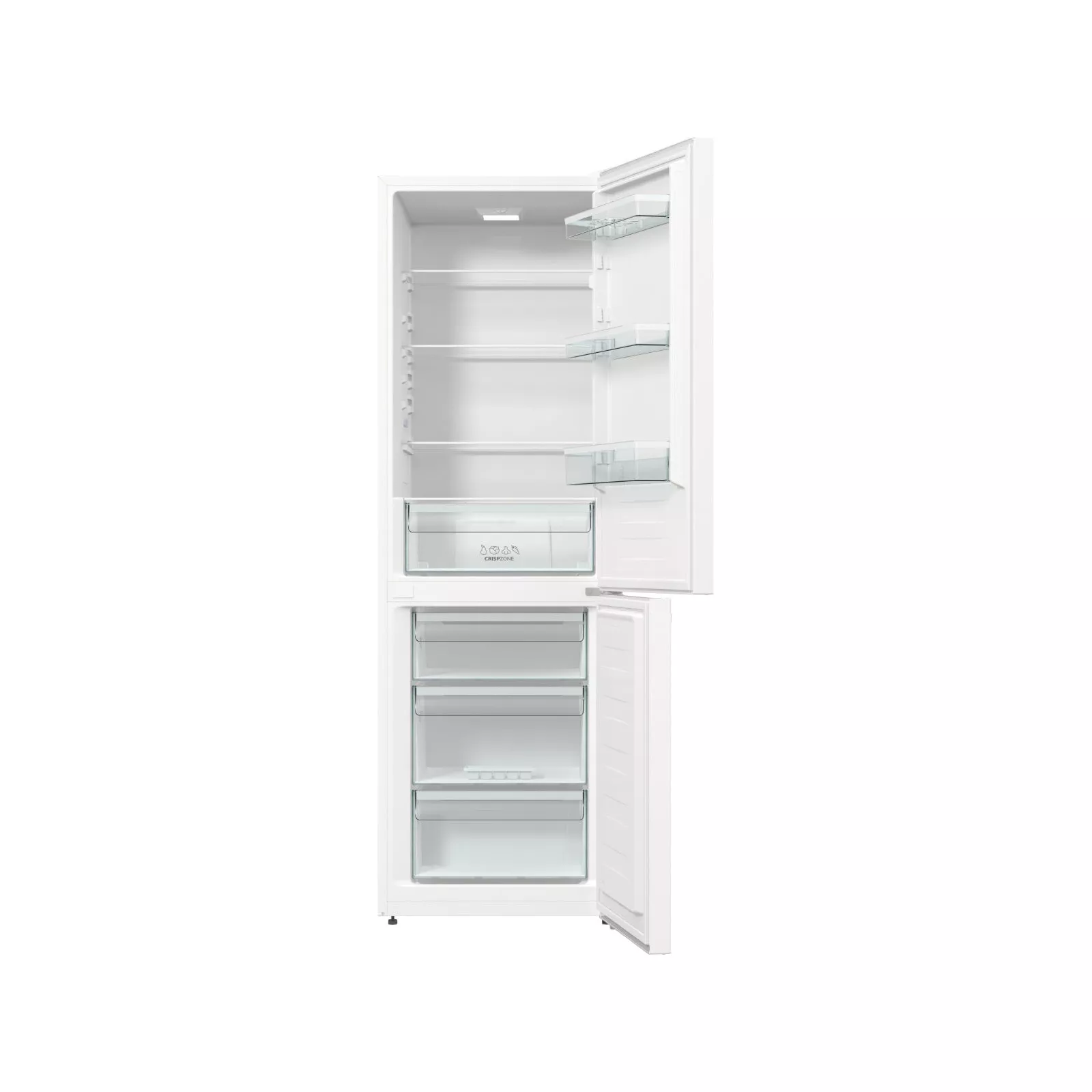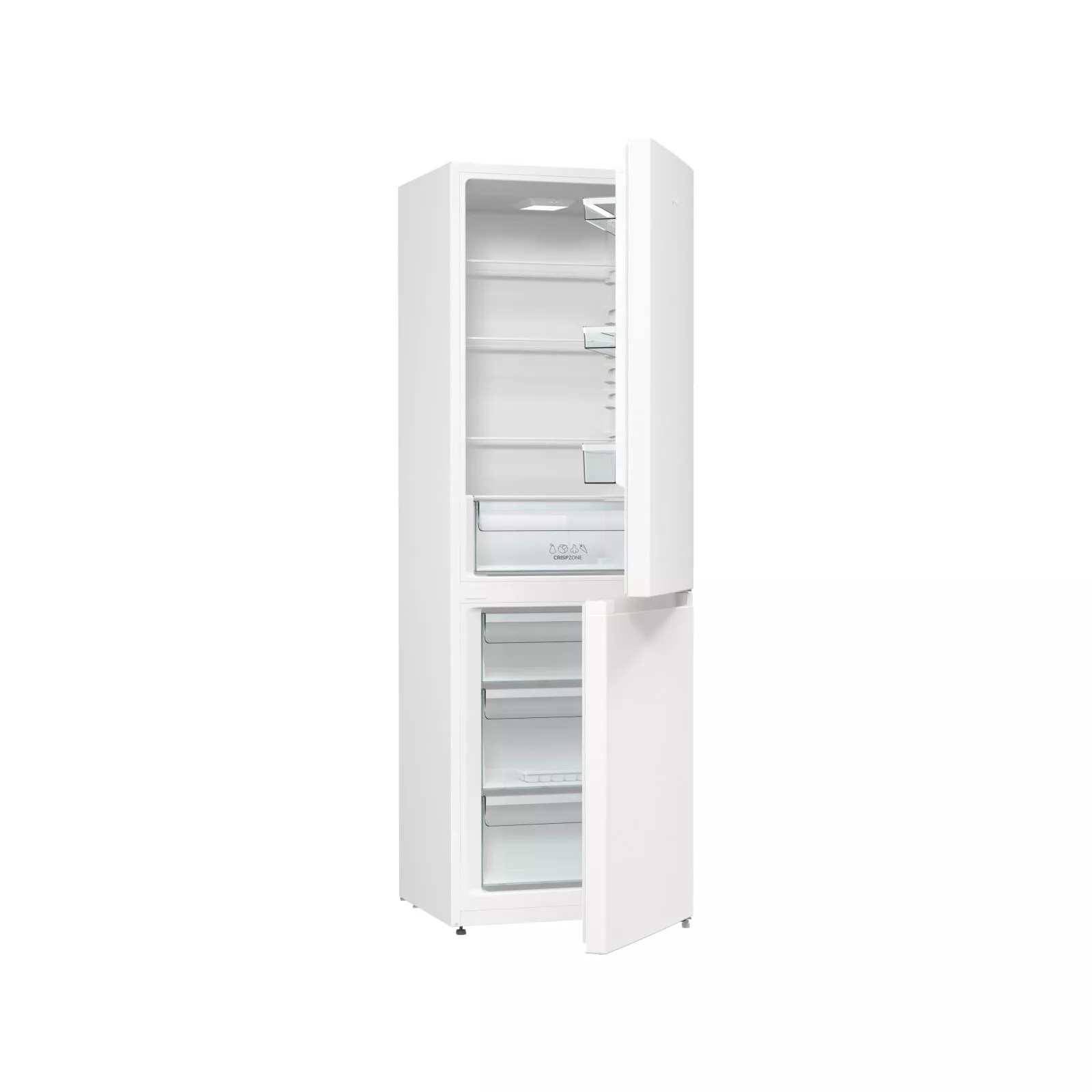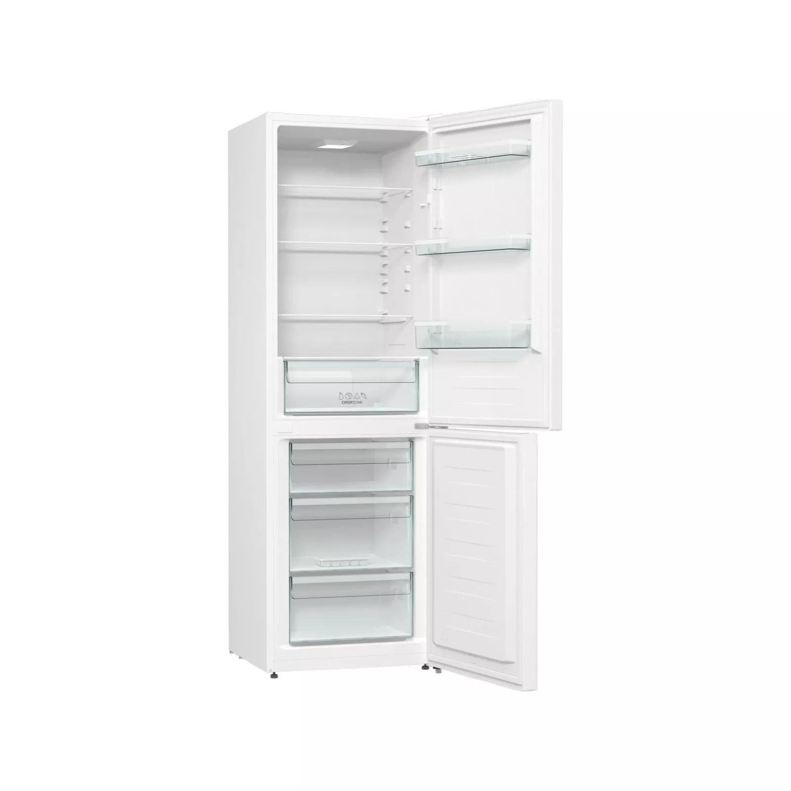Холодильник Gorenje RK62EW4 достаточно вместительный. Его полезный объем достигает 349 л, при этом объем морозильной камеры – 110 л. Прибор оснащен и укомплектован технологией FrostLess. Благодаря лучшей тепловой изоляции на хранящихся в камере продуктах и внутренних частях устройства не образуется иней. В результате холодильник Gorenje RK62EW4 не следует размораживать. Также он потребляет гораздо меньше электроэнергии. Стандартная глубина столешницы позволяет вписать устройство в интерьер любой кухни, обеспечивая при этом большое пространство для размещения пищи. Благодаря инновационному глянцевому гладкому внутреннему защитному слою холодильную и морозильную камеру прибора за 19 320 грн легко очищать. Расположенный внизу вместительный ящик CrispZone поможет длительно сохранять питательные свойства и свежесть овощей и фруктов. Дополнительные преимущества холодильника Gorenje RK62EW4 каждого покупателя, особенно, если учесть ряд его дополнительных плюсов: Бесшумность работы. Уровень шума не больше 38 дБ. Это обеспечивается безупречной изоляцией и инновационными решениями системы охлаждения.