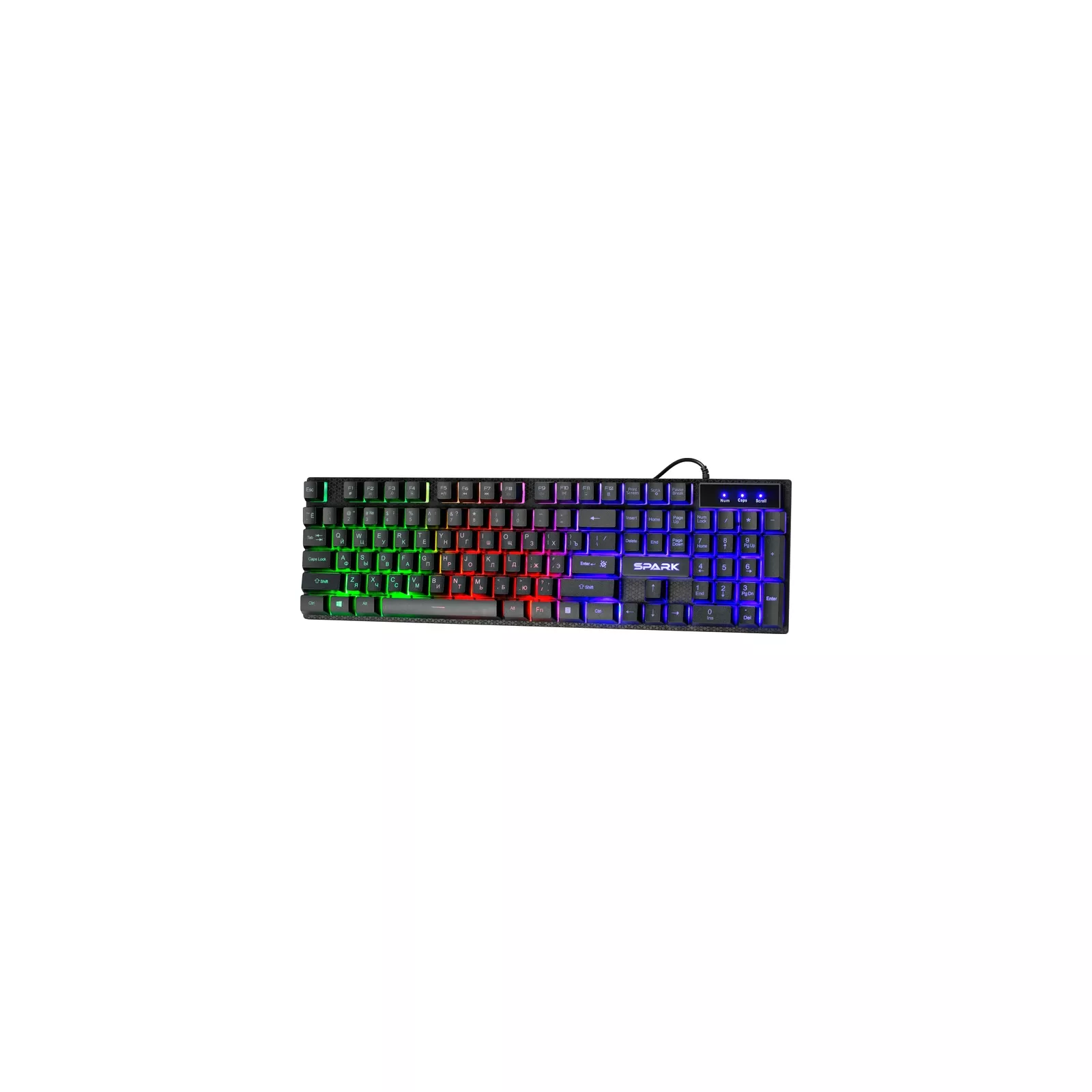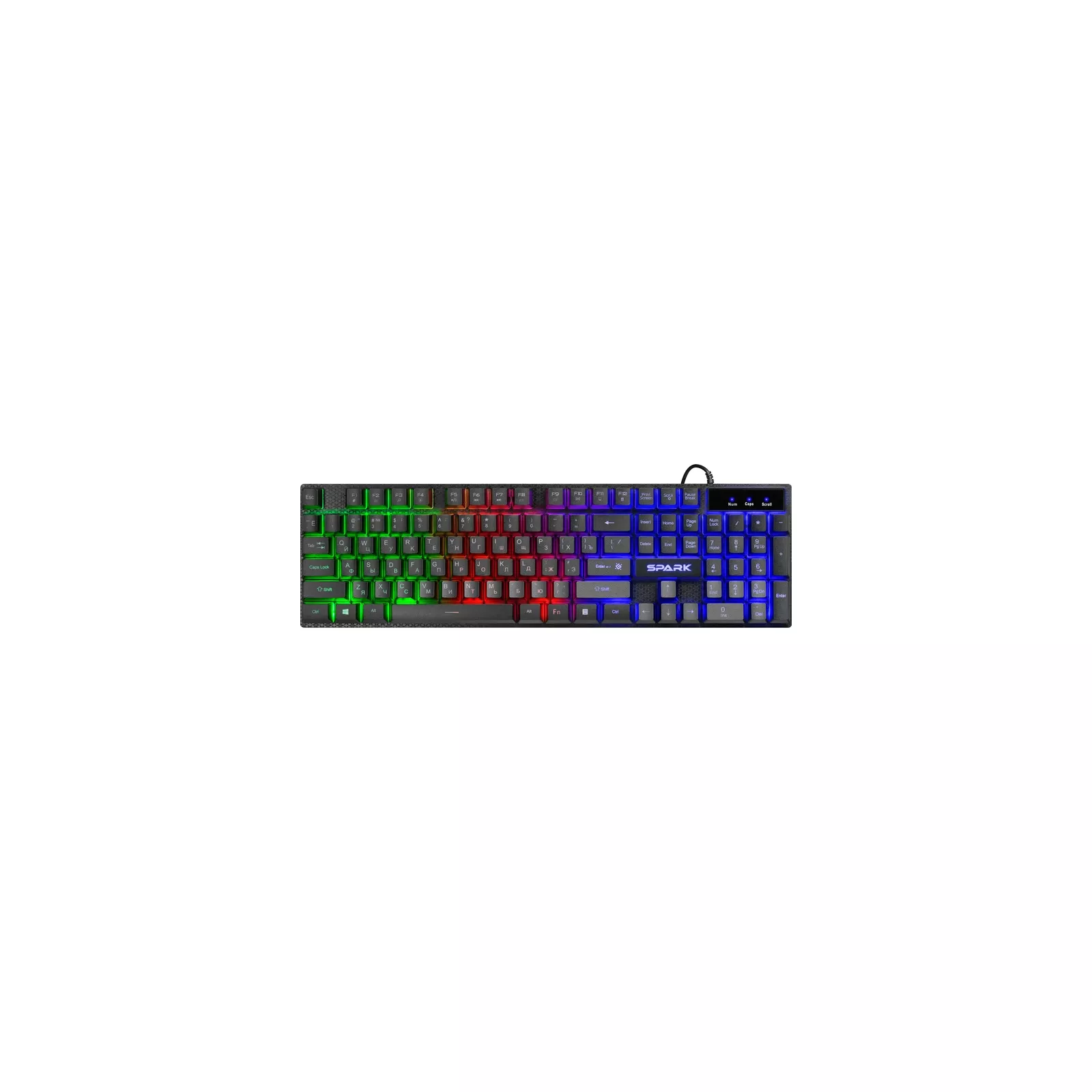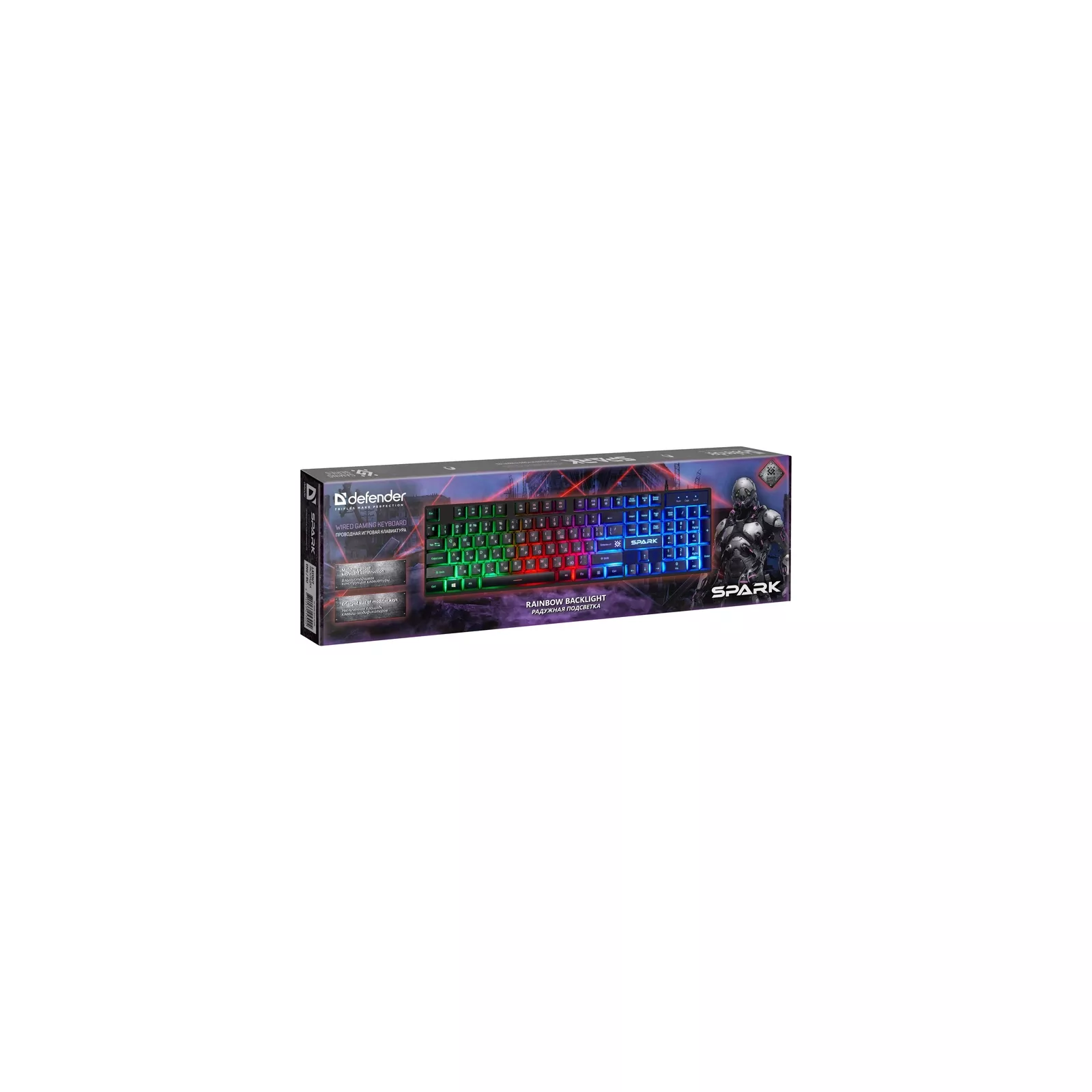 Клавиатура игры Defender Spark GK-300L для начинающих геймеров: радужная подсветка, влагостойкая конструкция, горячие клавиши для быстрого доступа к офисным, мультимедийным и интернет-приложениям.