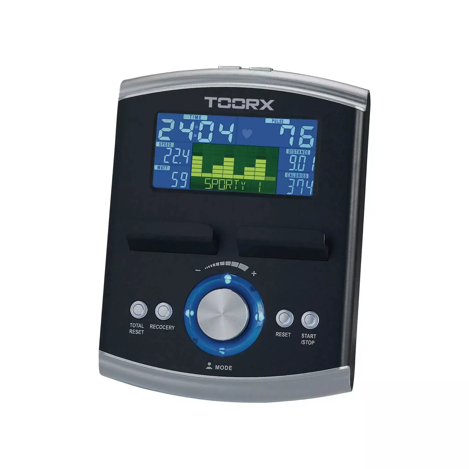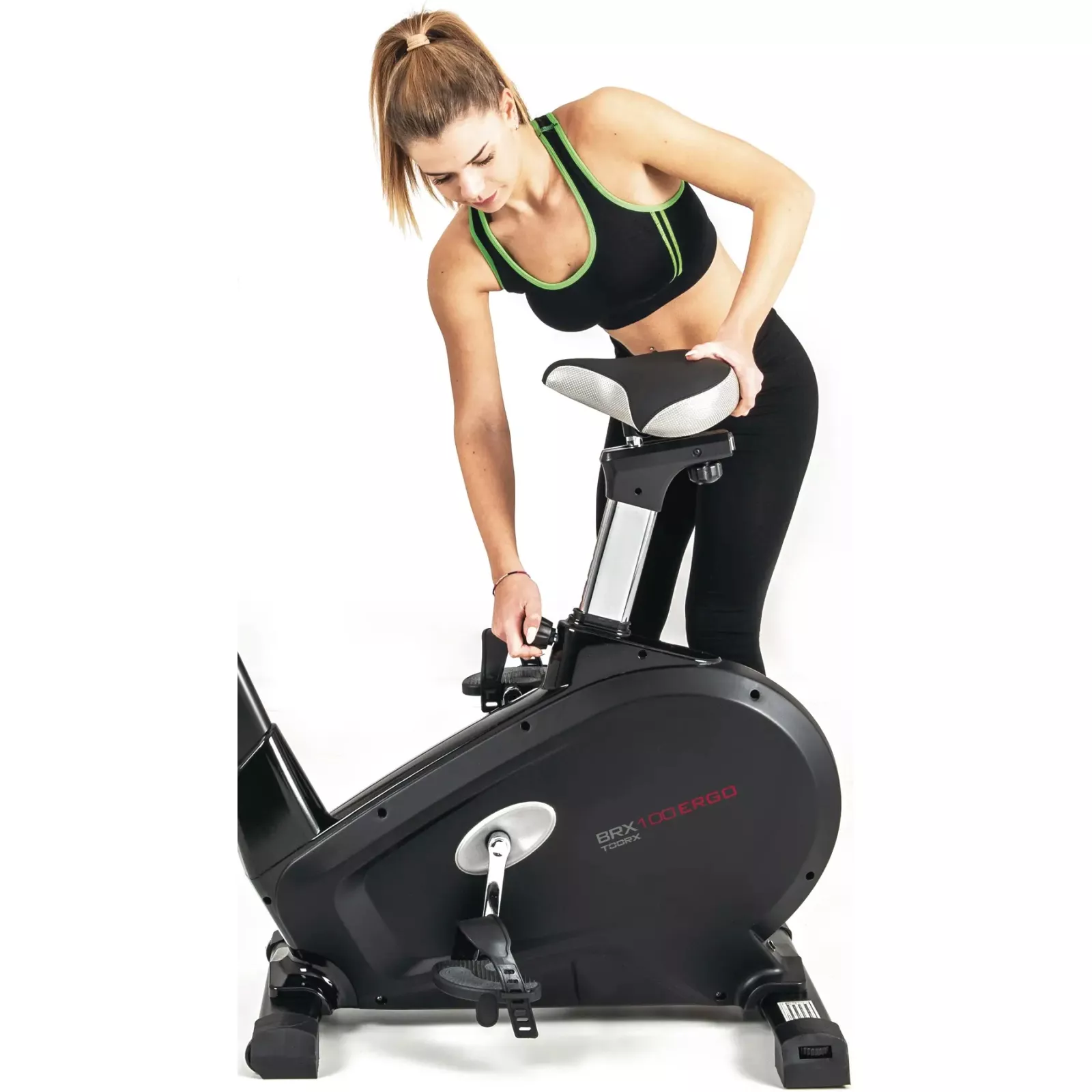 Велоэргометр Toorx Upright Bike BRX 100 ERGO (BRX-100ERGO) из премиальной линейки Chrono Line от итальянского производителя Garlando SpA предназначен для комфортной кардиотренировки в домашних условиях. Тренажер имеет 32 уровня нагрузки, регулируемые с помощью современного компьютера. 14-килограммовый маховик создает отличную плавность хода, снижая нагрузку на суставы и минимизируя риск получения травмы в процессе занятий. Велоэргометр рассчитан на вес до 150 кг и подойдет для пользователей ростом до 2 м. Встроенный приемник для беспроводного датчика (индикатор) измерения пульса будет уместен во время тренировки по одной из четырех пульсозависимых программ. Консоль тренажера имеет подставку для смартфона/планшета и поддерживает Bluetooth для интеграции с популярными приложениями iConsole+ Training, Kinomap и Zwift, которые превратят монотонную тренировку в увлекательный процесс. Сидение велоэргометра регулируется по высоте и в горизонтальной плоскости для индивидуальной настройки, а транспортировочные ролики в передней части тренажера позволяют перемещать его по комнате.