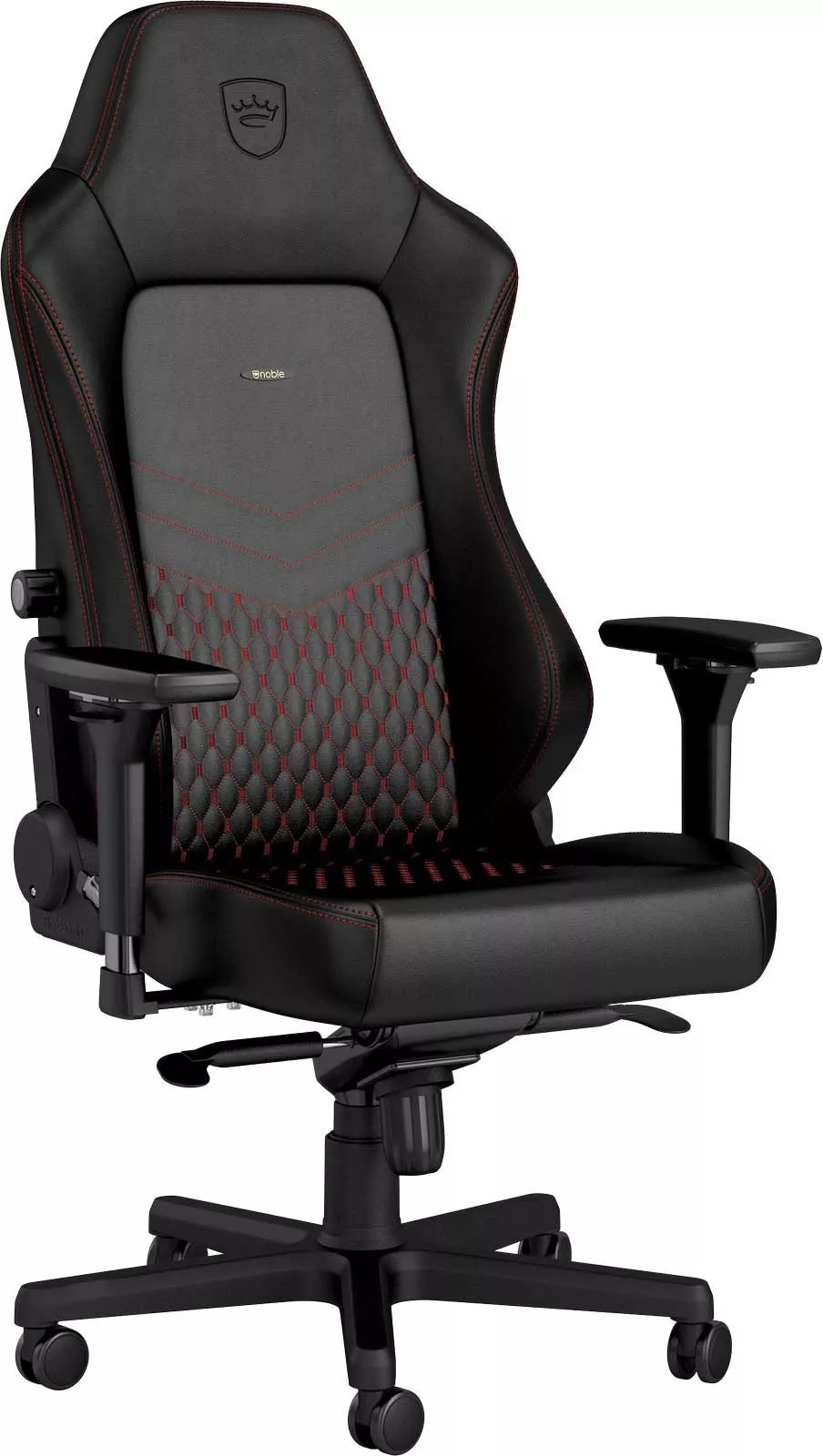 Кресла NOBLECHAIRS предлагают максимальную вариацию настроек всех элементов, для адаптации его к индивидуальным требованиям. В коническом отверстие звездной базы находиться регулируемый по высоте, 4-го класа безопасности, газлифт, который переходит в механизм качания на переднем крае под зоной отдыха. Комфортабельная позиция может быть достигнута с помощью функции динамического угла наклона спинки, для чего и предназначен механизм качания. Позиции наклона могут быть заблокированы, а жесткость наклона может динамически регулироваться с помощью ручки управления в нижней части сиденья. Кроме того, угол между спинкой и сидением может статически регулироваться с помощью бокового рычага. Набор функций усовершенствован 4D подлокотниками, которые регулируются в четырех измерениях и изготовлены из мягкого полиуретана покрытого в черный цвет.