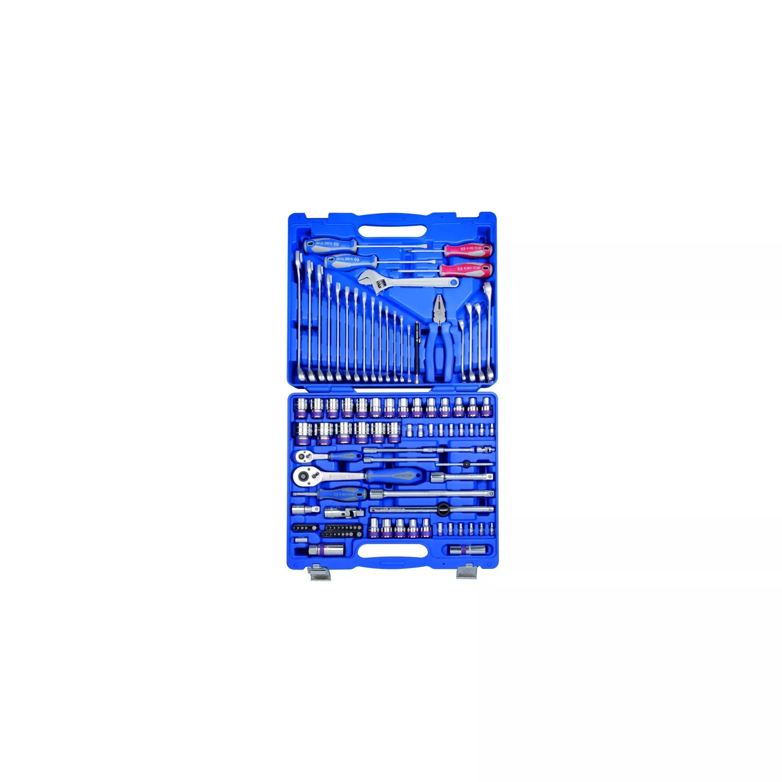 | Комплектация набора | биты, вороток, гаечные ключи, гибкий удлинитель, головки для свечей зажигания, держатель для бит, инструменты для работы с торцевыми головками, кардан шарнирный, отвертки, пассатижи, разводной ключ, телескопическая магнитная ручка, торцевые головки, трещотка, удлинитель, шарнирно инструмент |