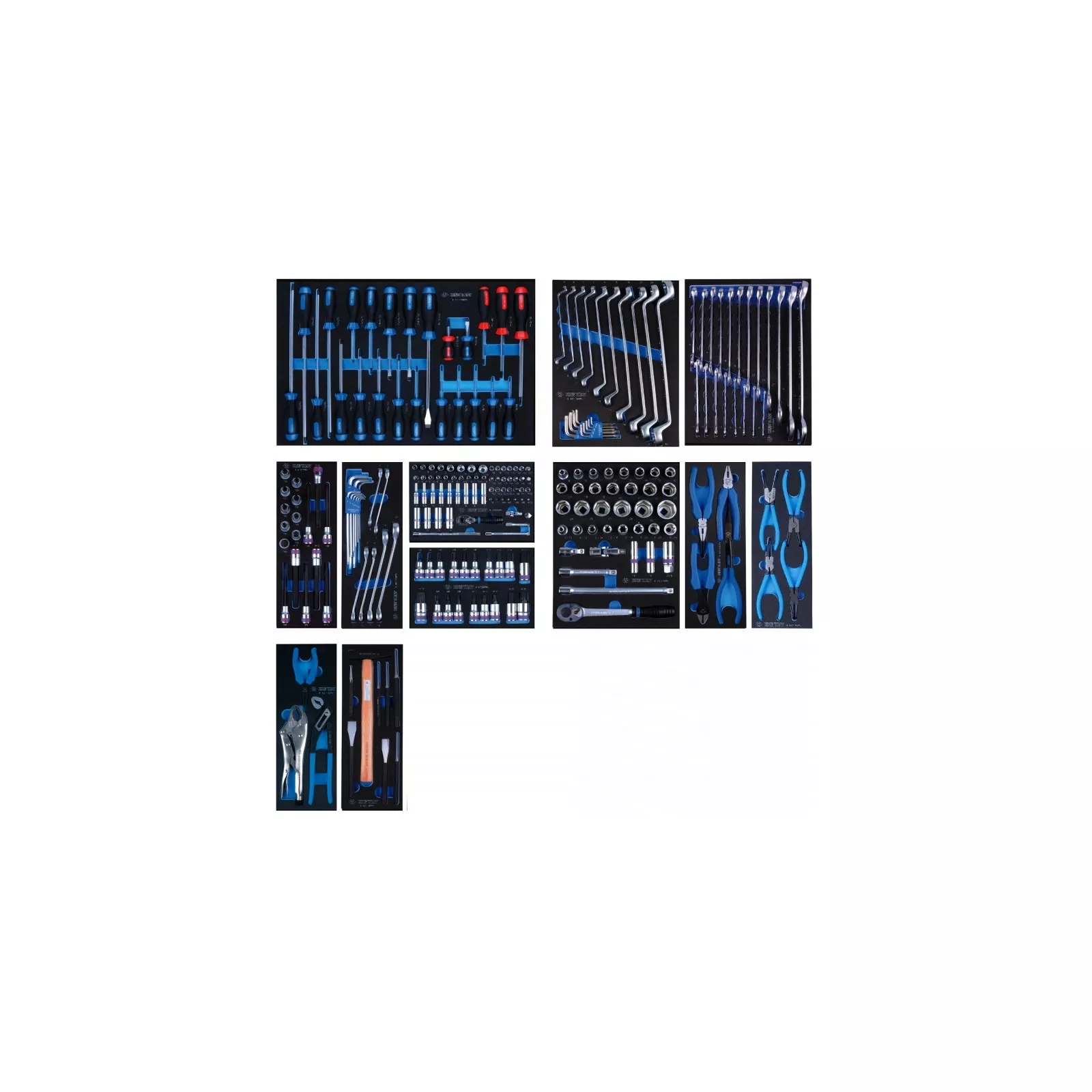 | Комплектация набора | биты, бокорезы, вороток, выбивачки, гаечные ключи, держатель для бит, долгогубцы, зубило, инструменты для работы с торцевыми головками, кардан шарнирный, клещи с фиксатором, молоток, острогубцы, отвертки, пассатижи, переставные клещи, съемник стопорных колец, шарнирно-губцевый инструмент, шестигранные/звездообразные ключи |